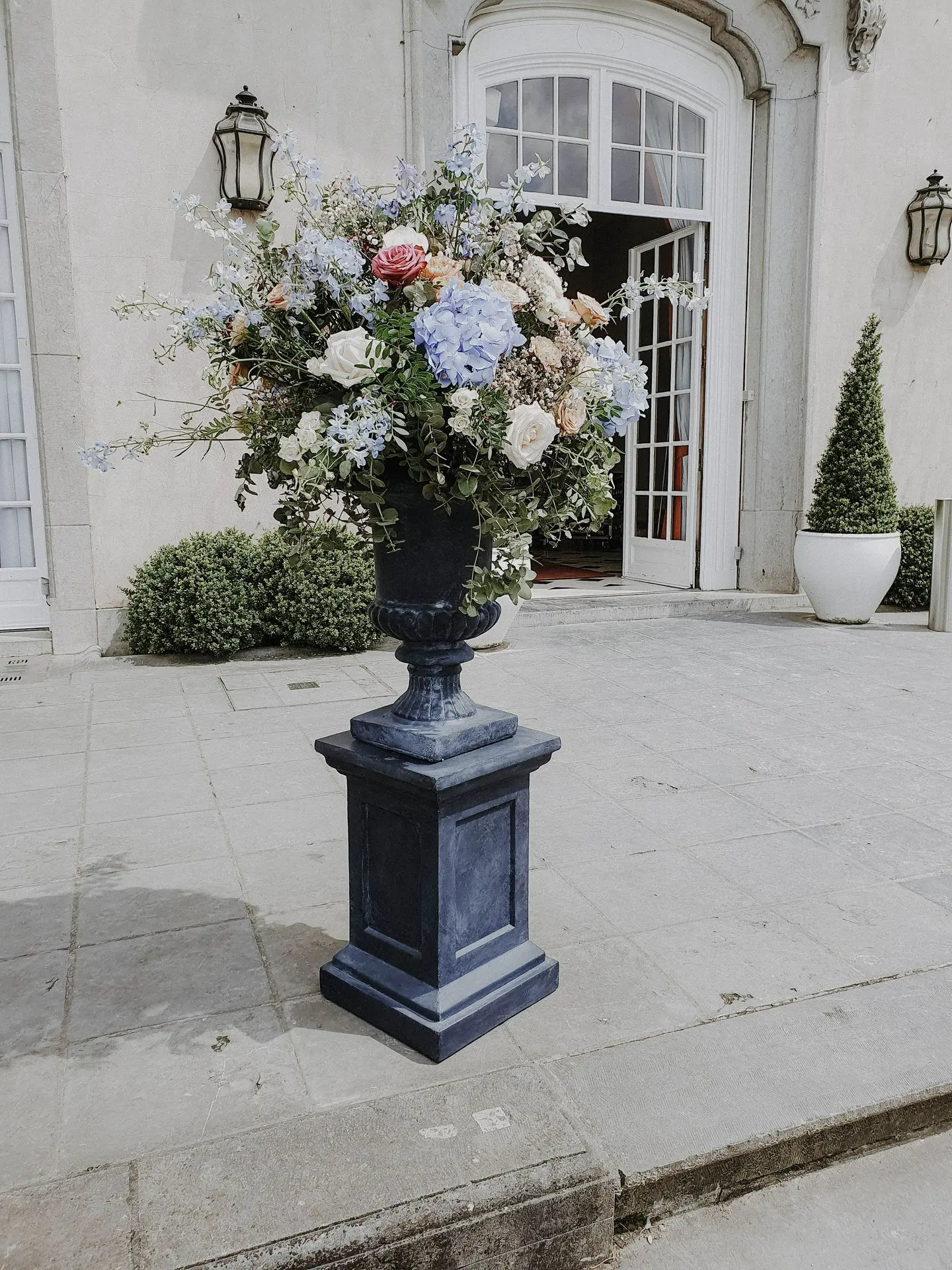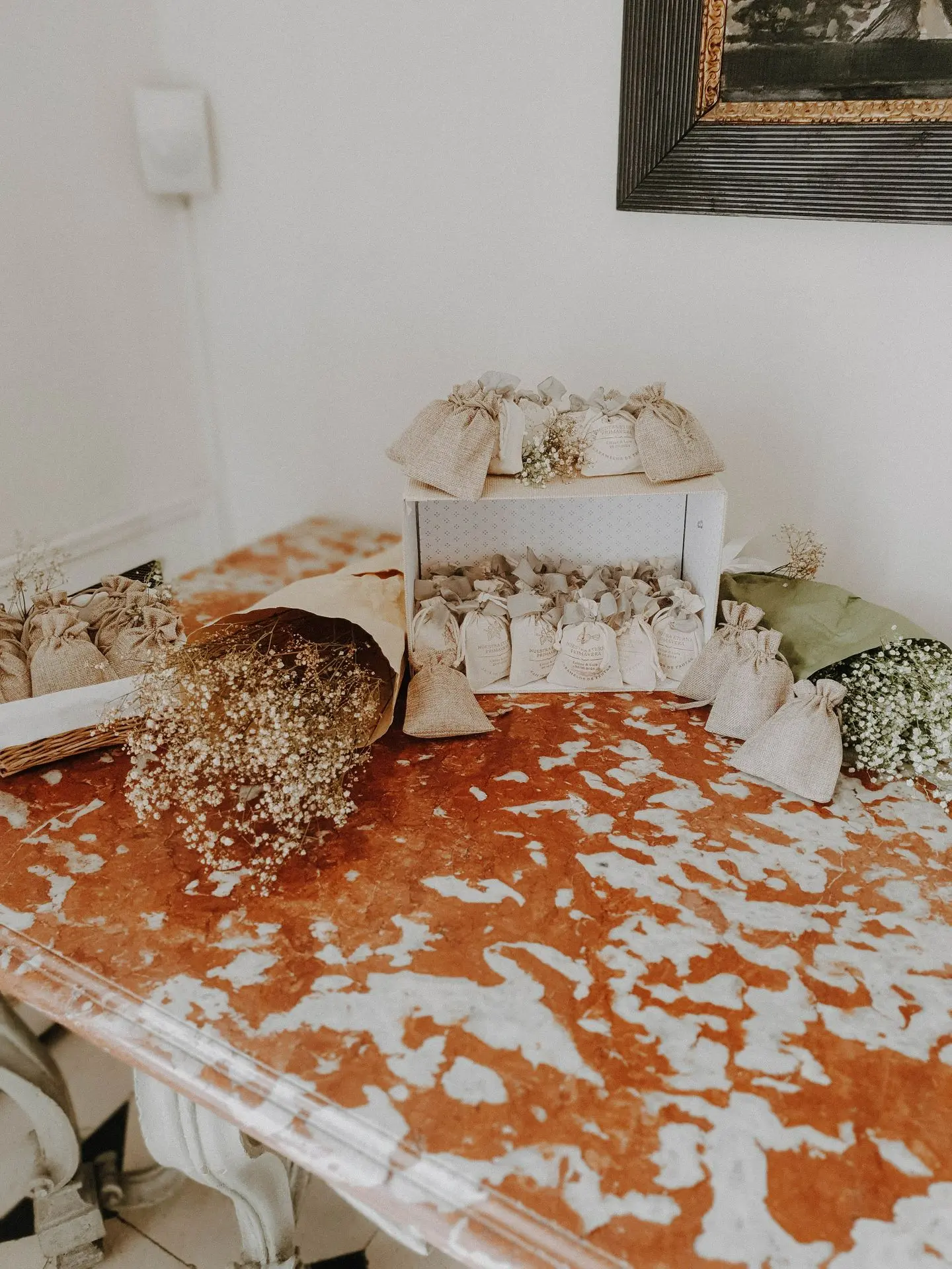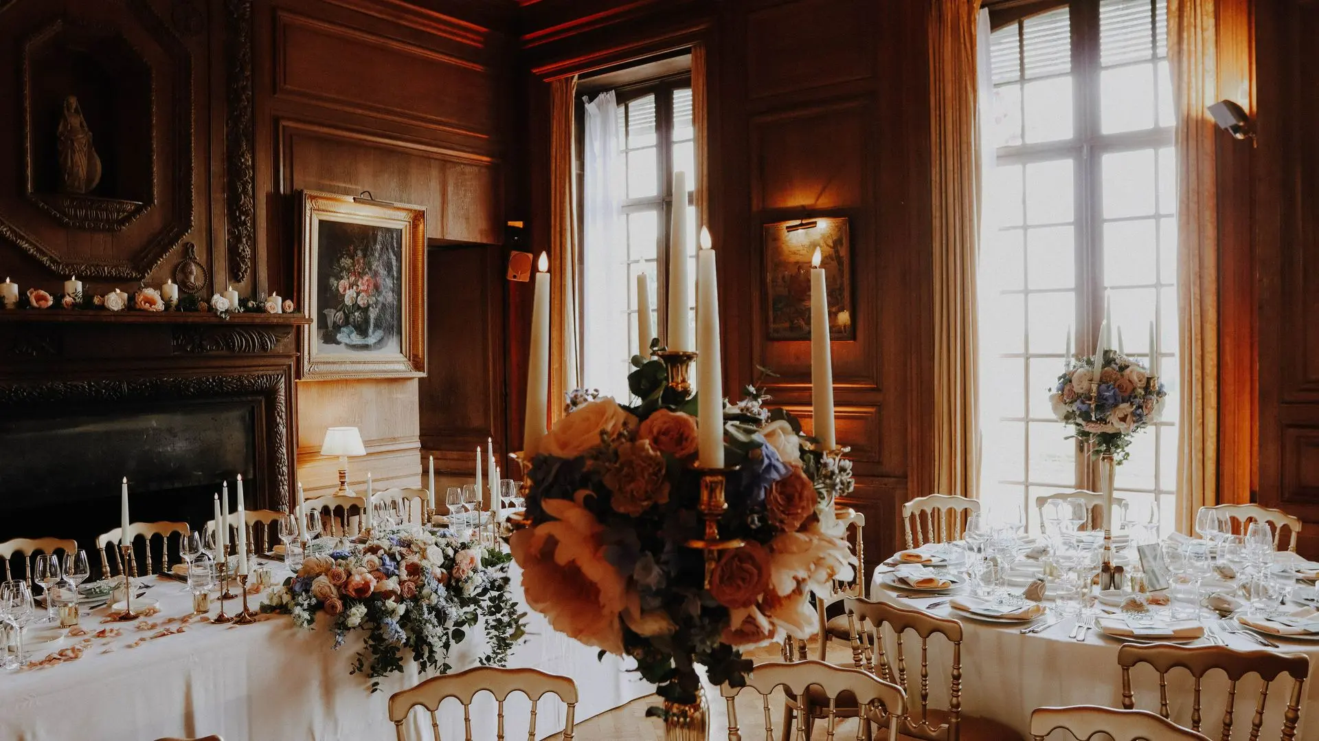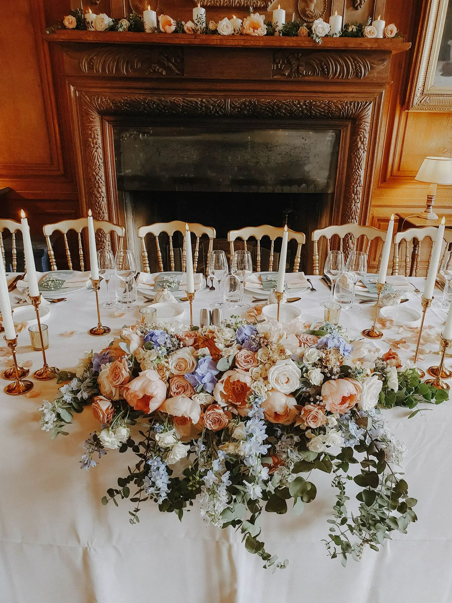 J’ai eu le plaisir de créer le bouquet de mariée, installer les Médicis à l’entrée du château, ainsi que le panneau de bienvenue en cadre or et plexi transparent pour accueillir les invités avec élégance.