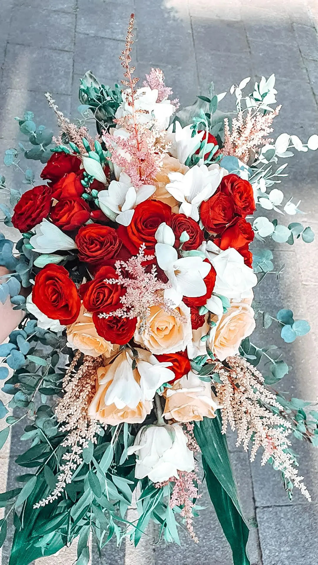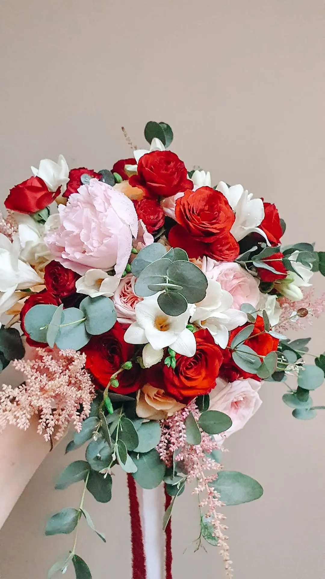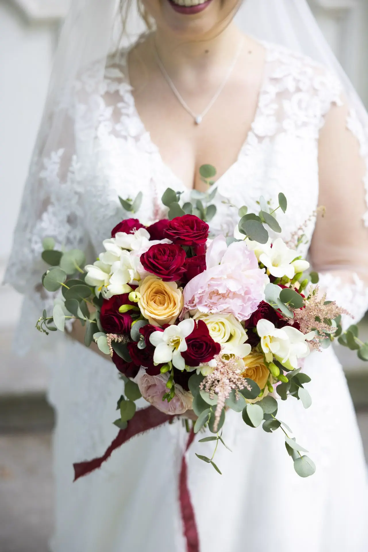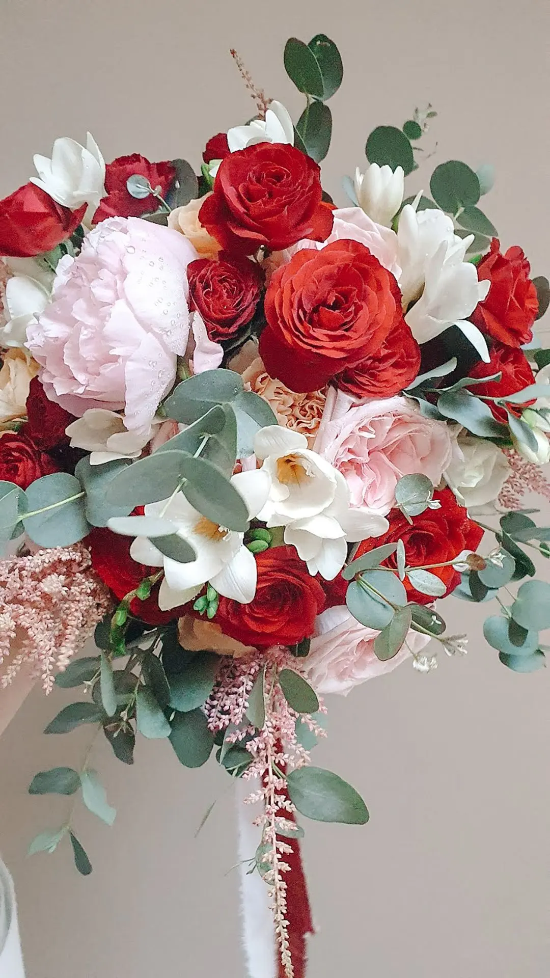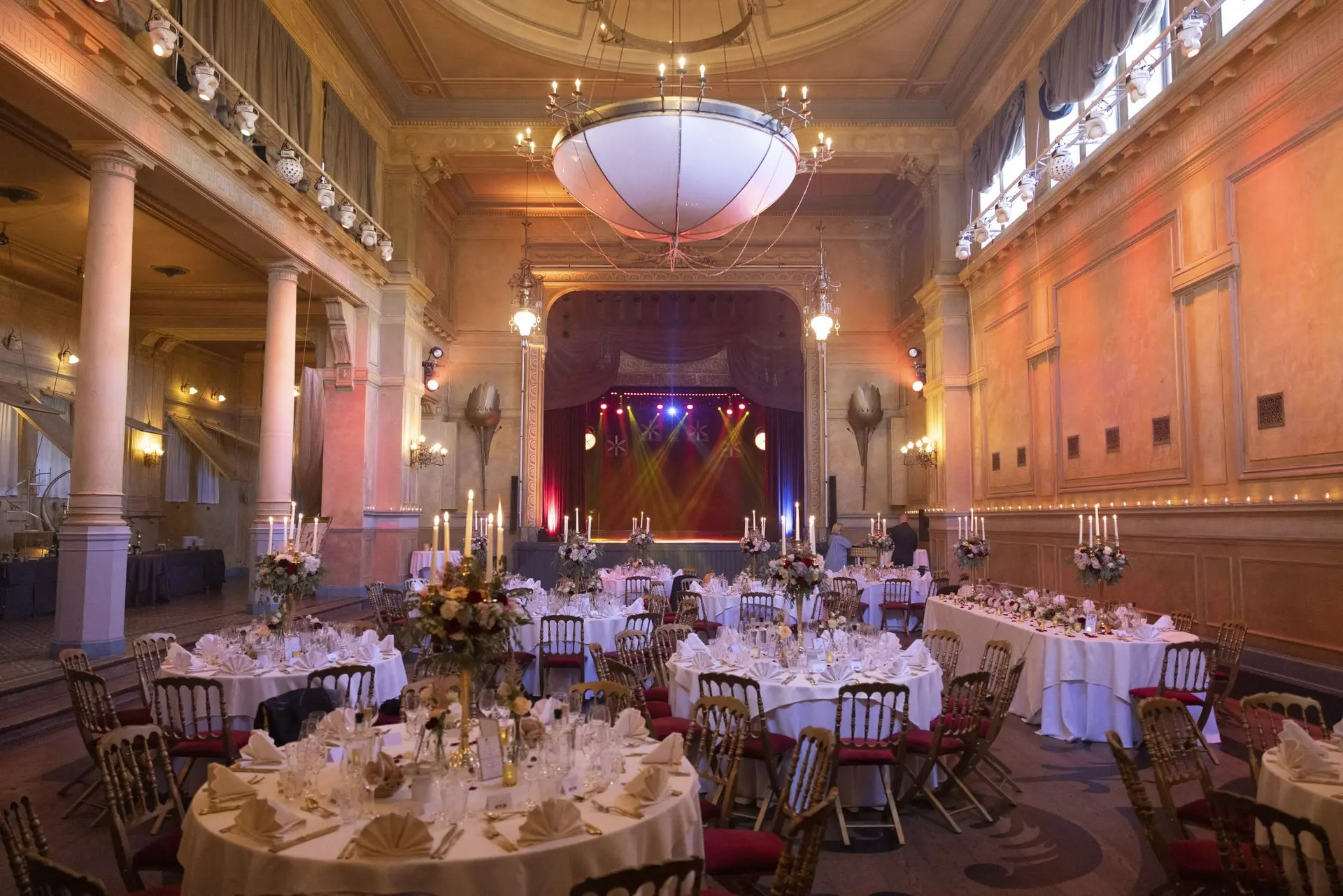 Les chandeliers fleuris, véritables pièces maîtresses, ont illuminé la salle tout en ajoutant une touche de romantisme. Les touches de rouge, subtilement intégrées dans la décoration, ont souligné l’intensité et l’émotion de cette journée exceptionnelle.