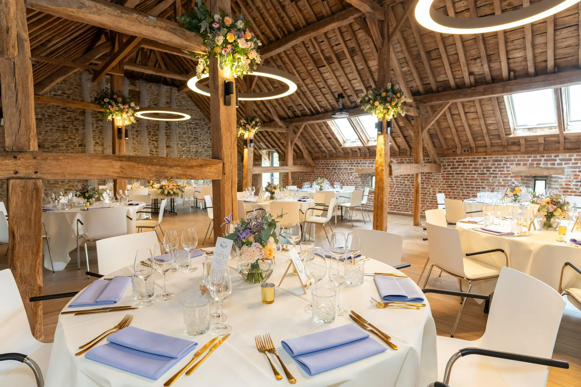 Pour la soirée, la cheminée et les colonnes de la salle étaient sublimées par des décorations florales, enveloppant l’espace d’une ambiance raffinée.