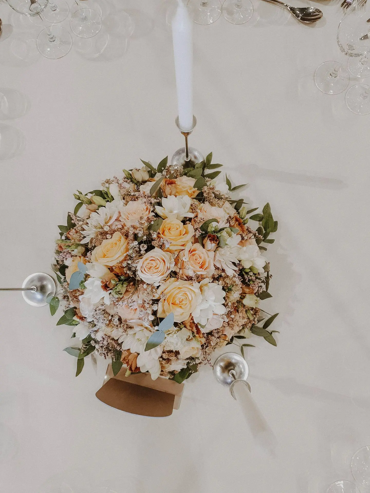 Les centres de table, également fleuris, apportaient couleur et légèreté, sublimant l’ensemble et créant une ambiance raffinée, chaleureuse et accueillante pour cette journée mémorable.