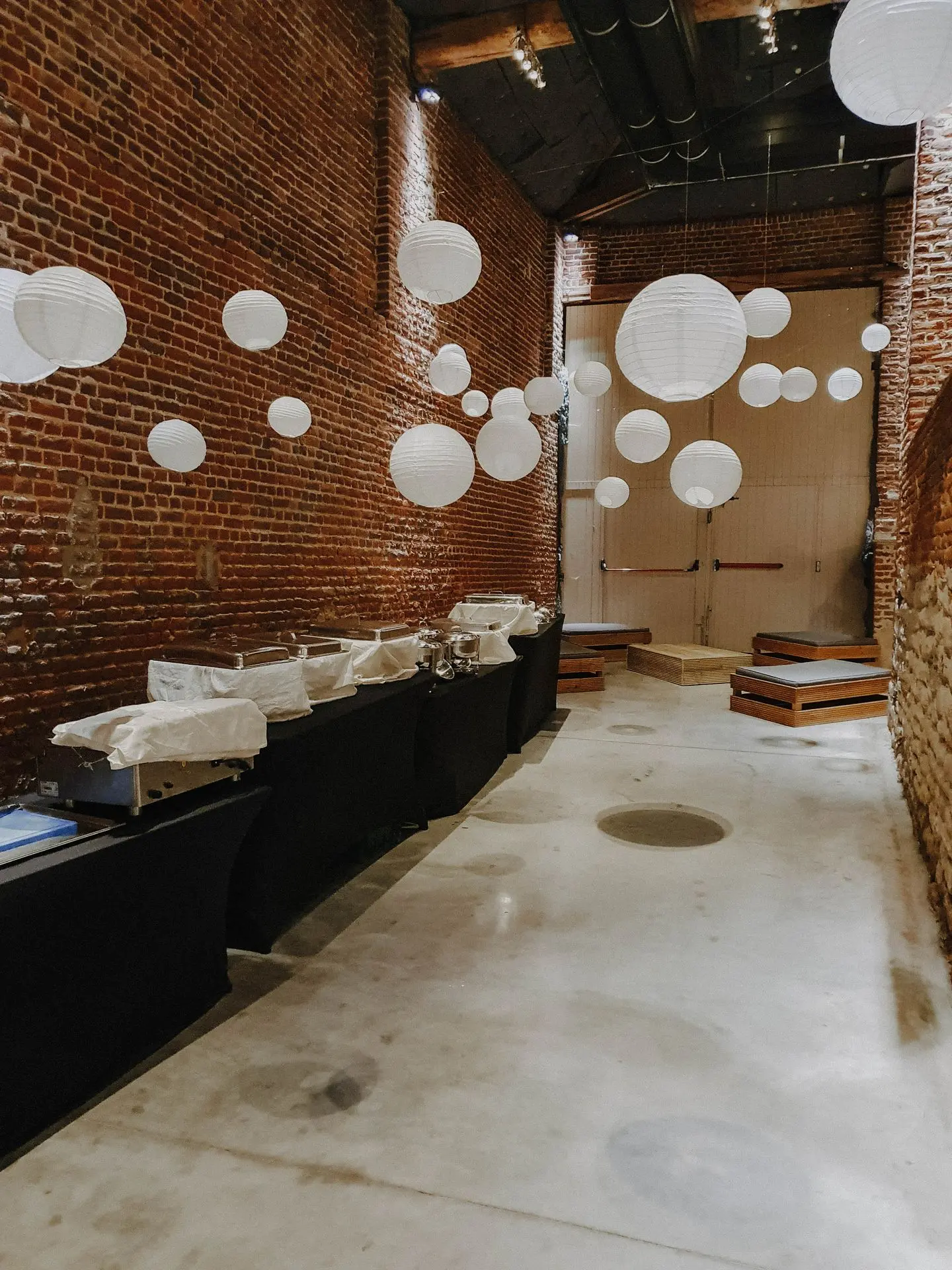 Pour le coin buffet, des lampions ont été disposés, apportant une atmosphère cosy et conviviale.