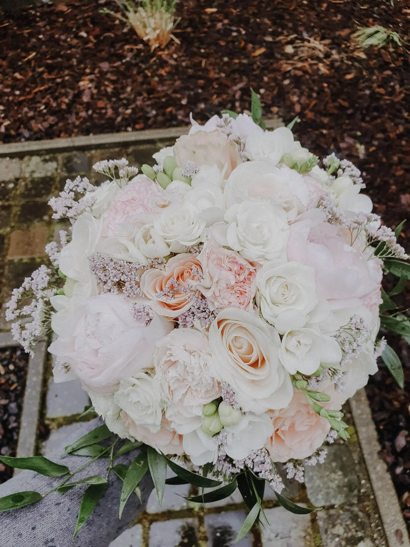 Pour les invités, chaque table accueillait un bouquet rond délicatement composé, accompagné de bougies pour une ambiance douce et intimiste.