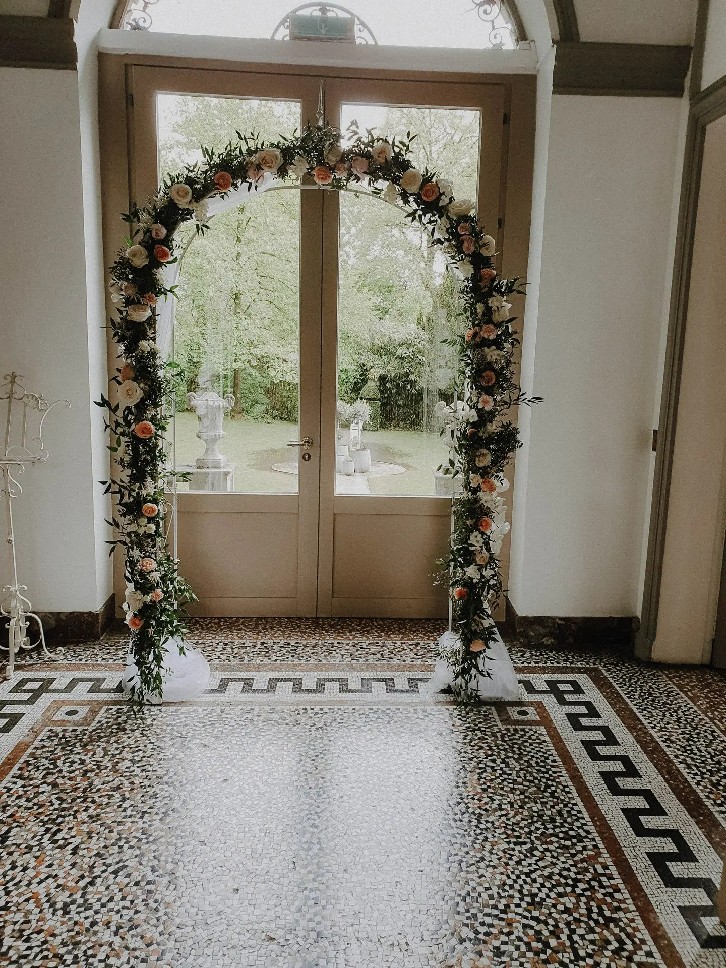 Une élégante arche avait été installée pour la cérémonie, créant un cadre romantique et intemporel.