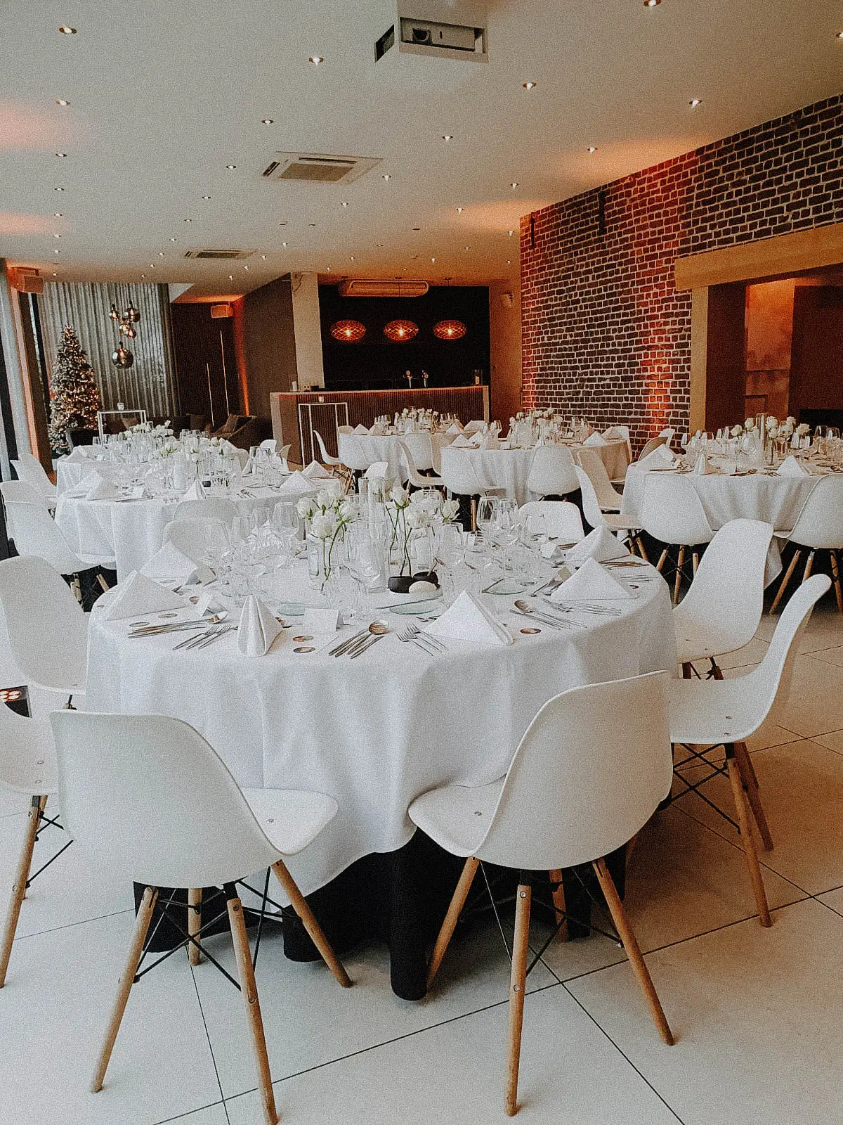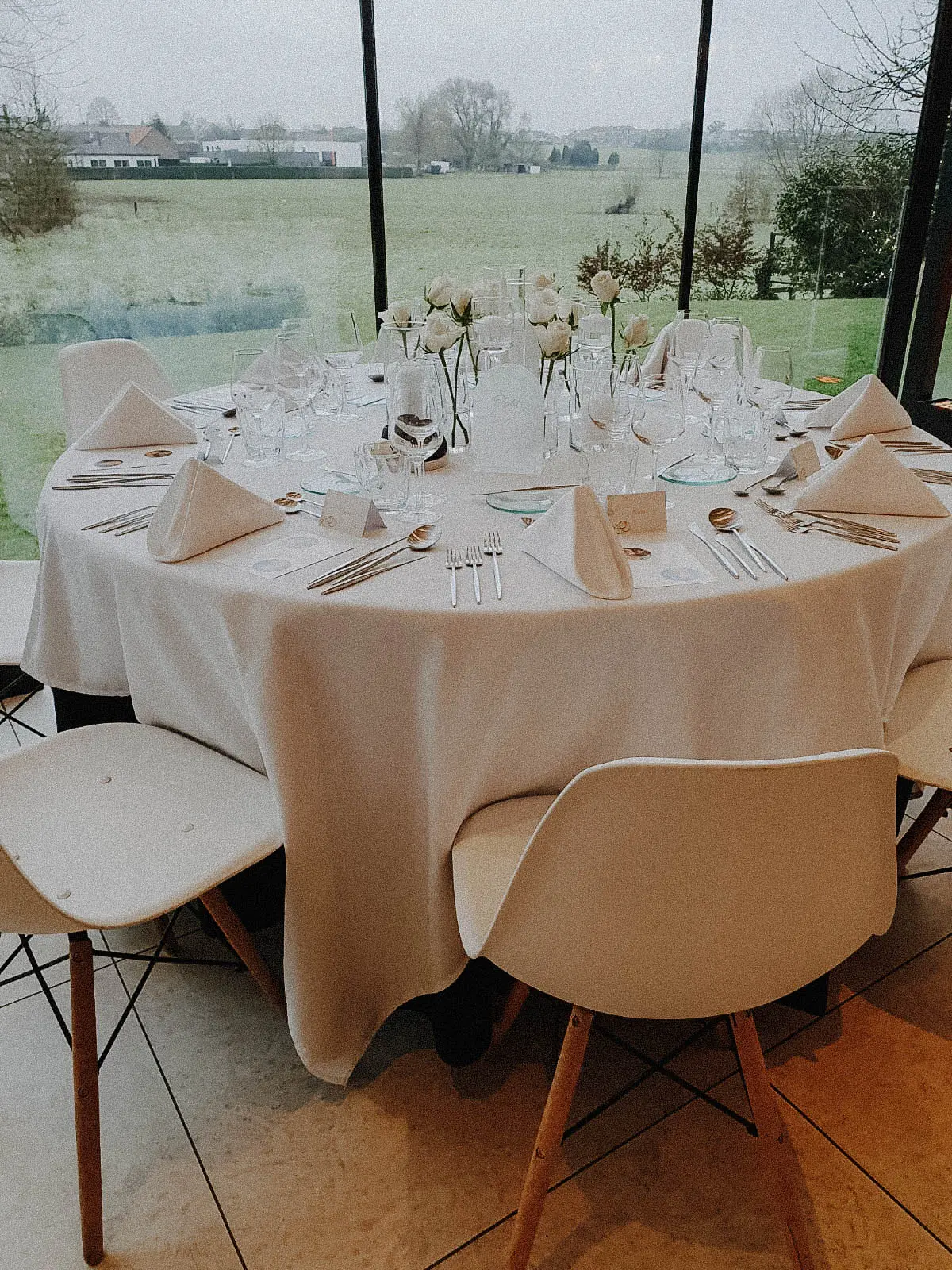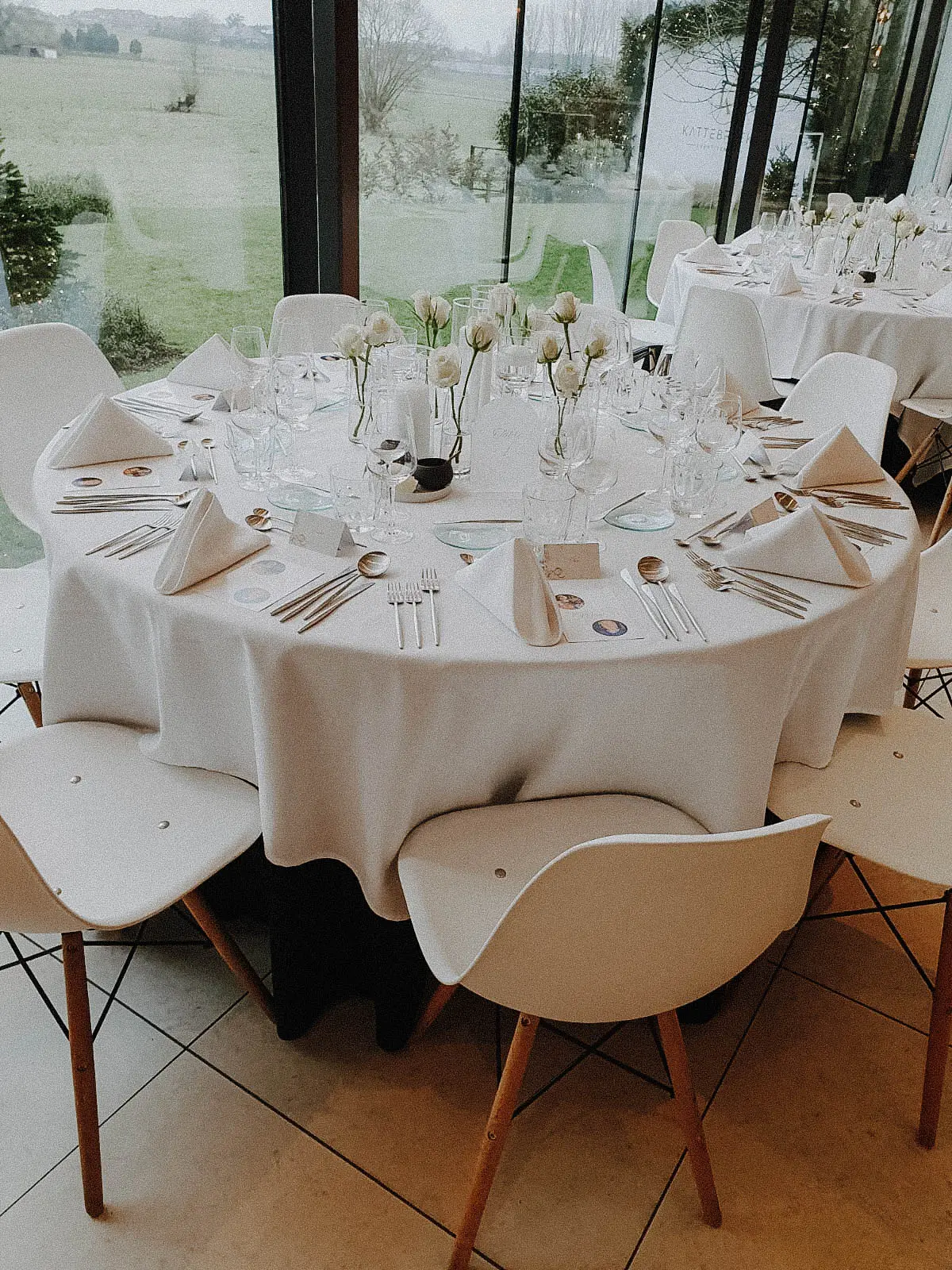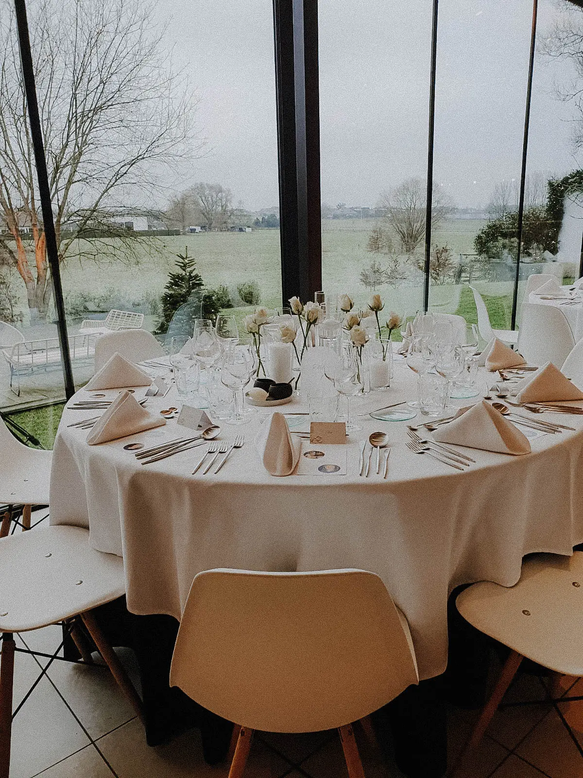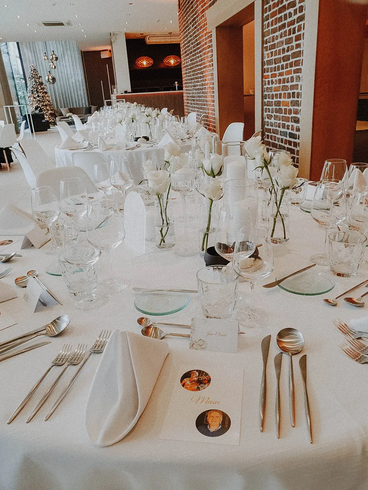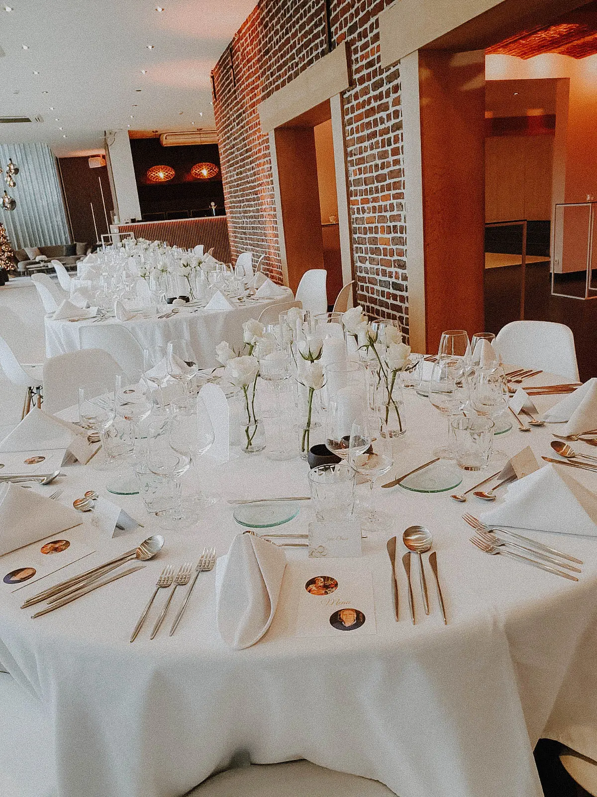 Un mariage tout en blanc, où chaque détail a été pensé avec élégance. Les tables étaient parées d’un ensemble de petits vases et de bougies délicates, apportant chaleur et intimité à l’espace. L’ambiance était douce et raffinée, reflétant parfaitement l’esprit romantique et lumineux de cette journée unique.
