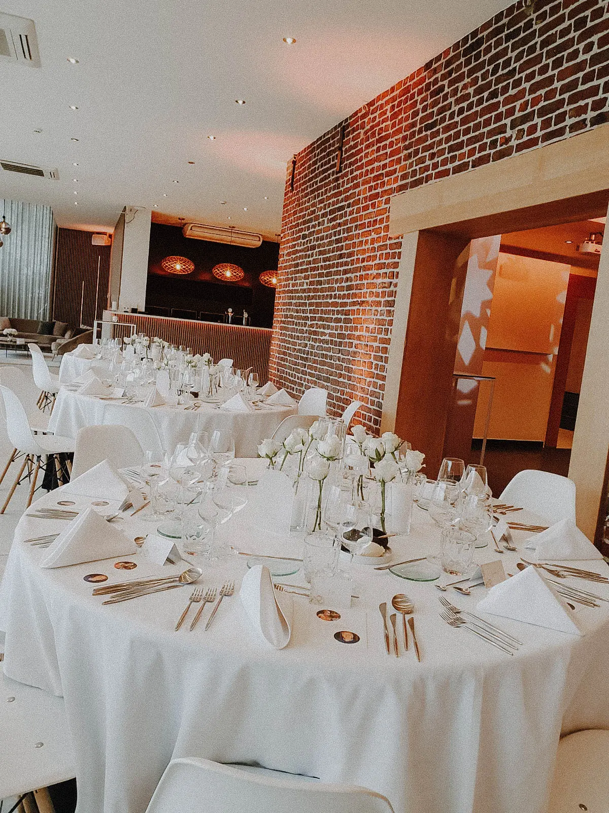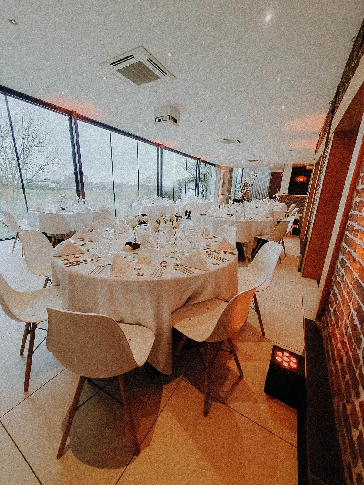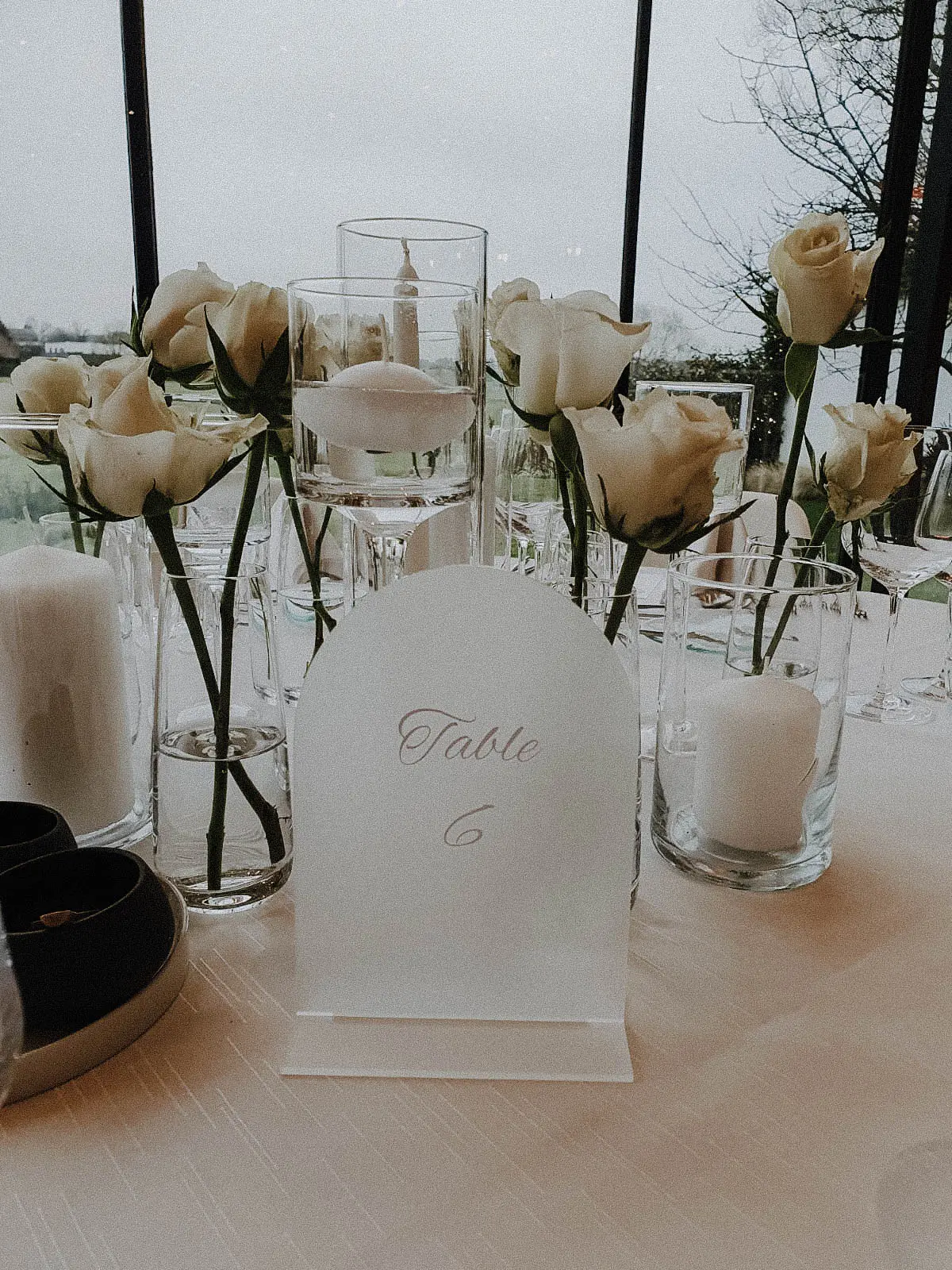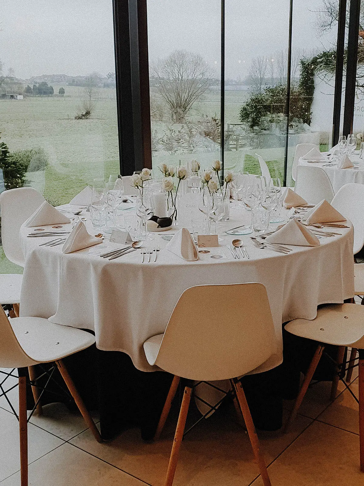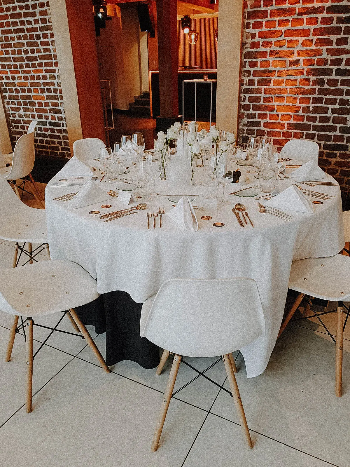 Un mariage tout en blanc, où chaque détail a été pensé avec élégance. Les tables étaient parées d’un ensemble de petits vases et de bougies délicates, apportant chaleur et intimité à l’espace. L’ambiance était douce et raffinée, reflétant parfaitement l’esprit romantique et lumineux de cette journée unique.