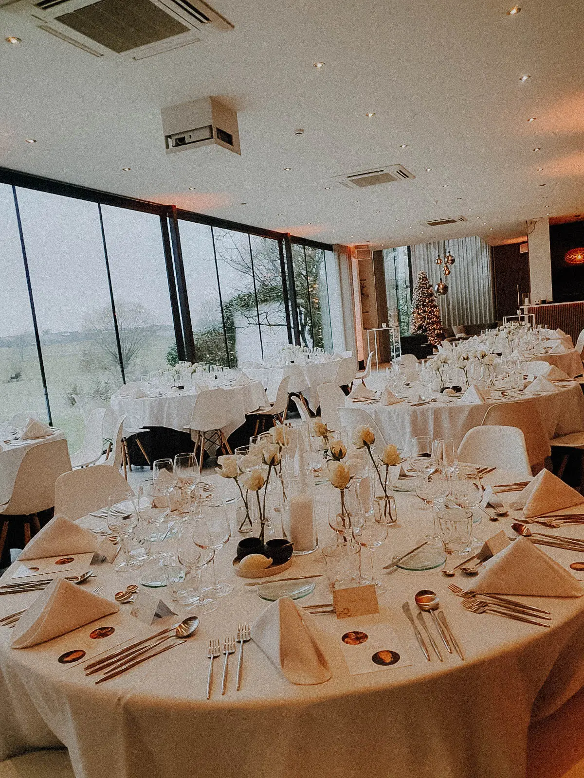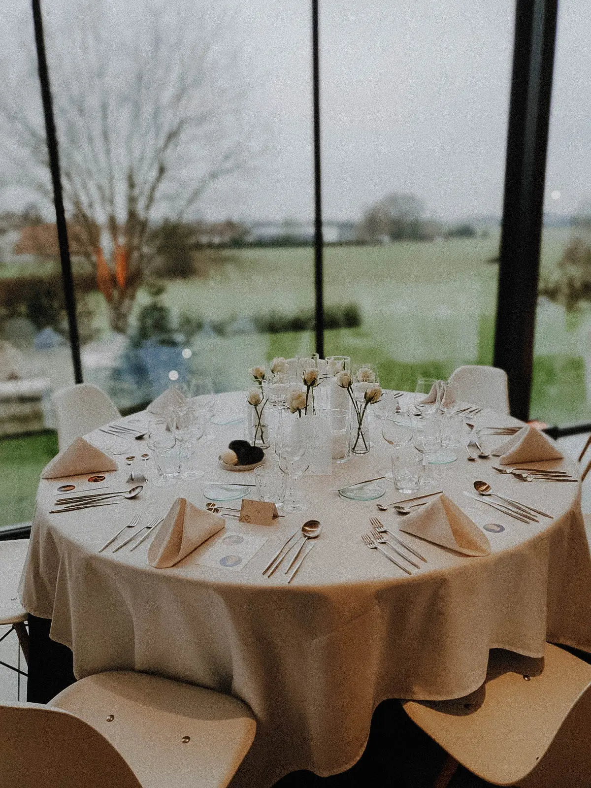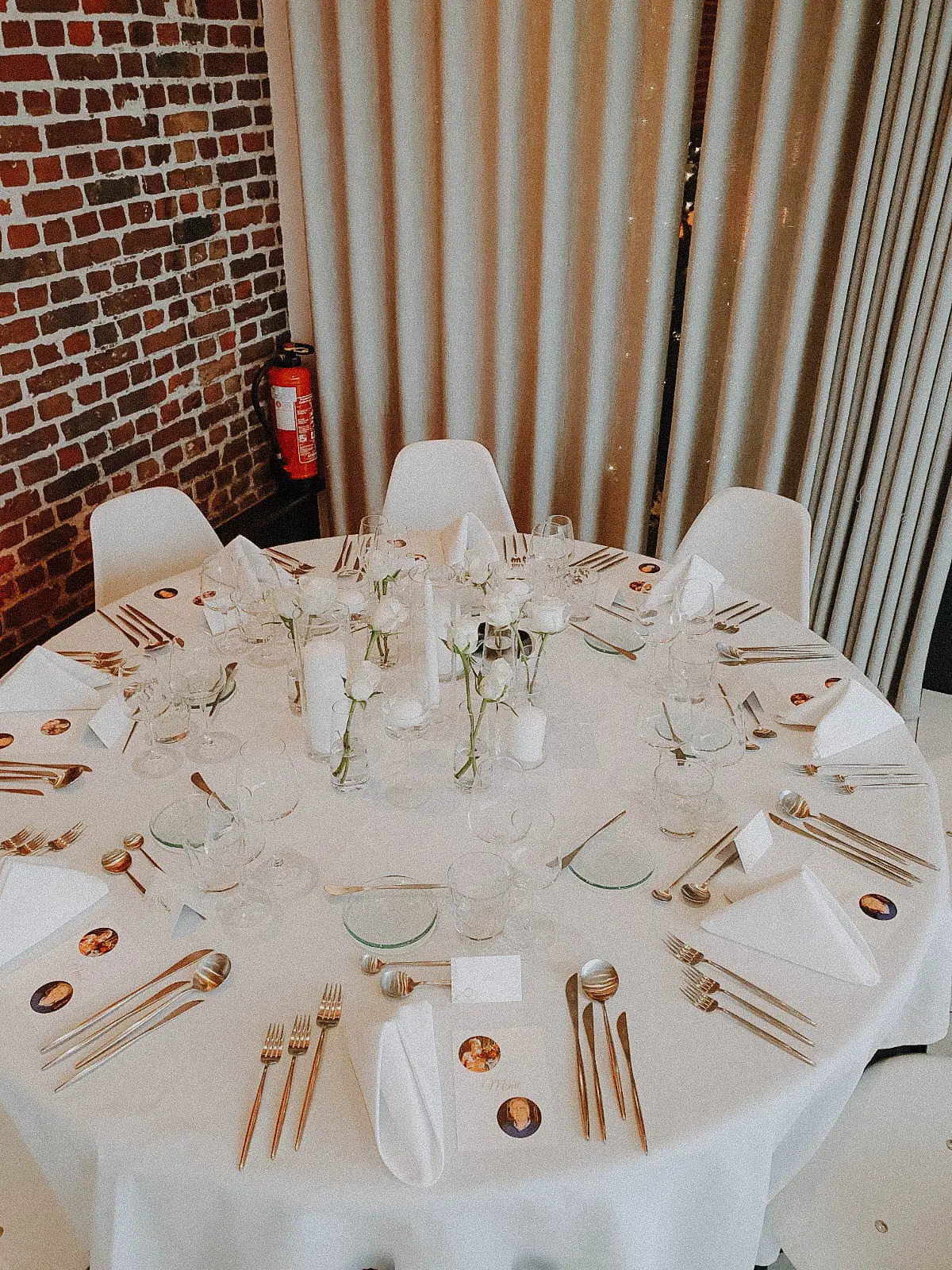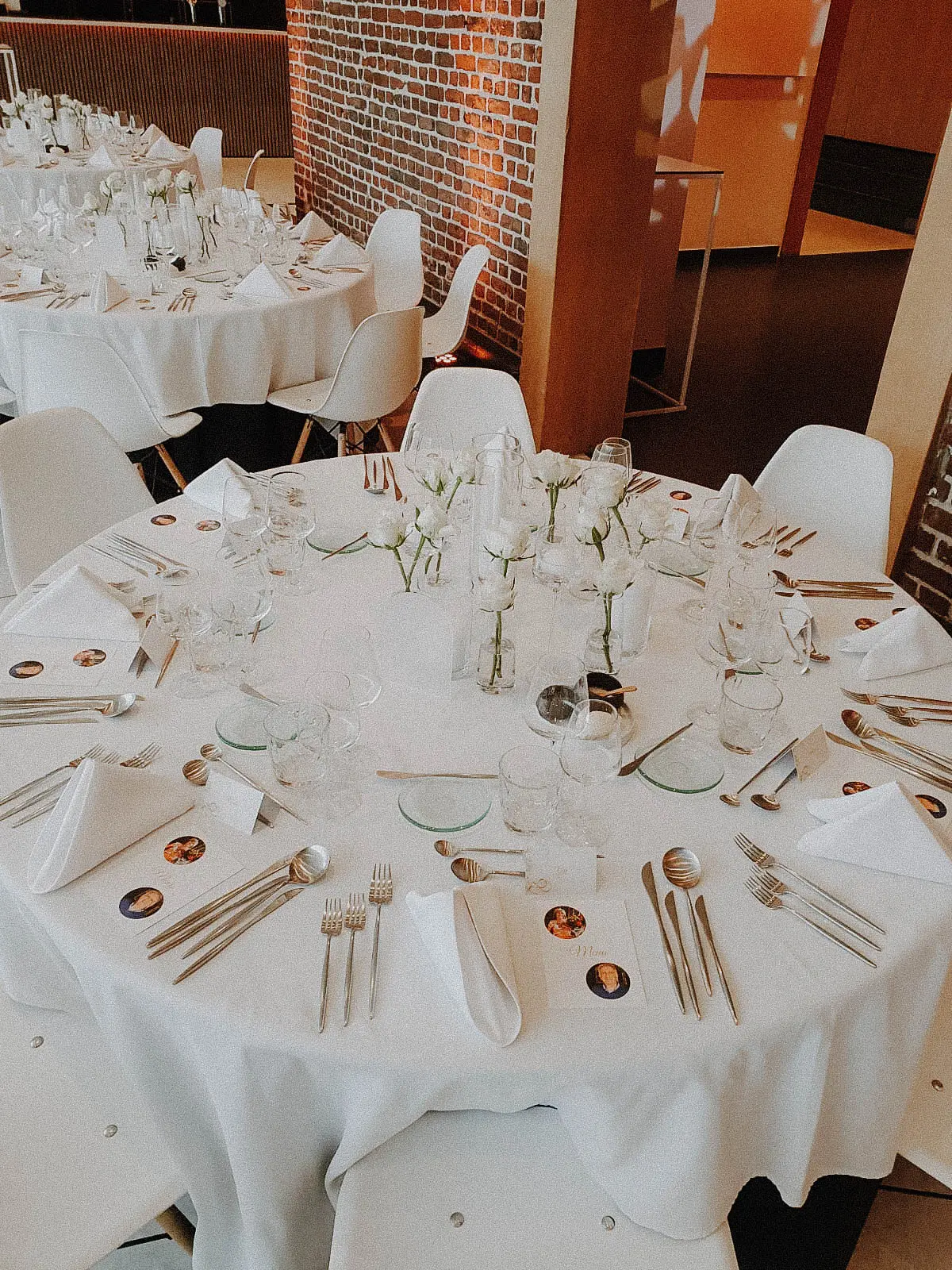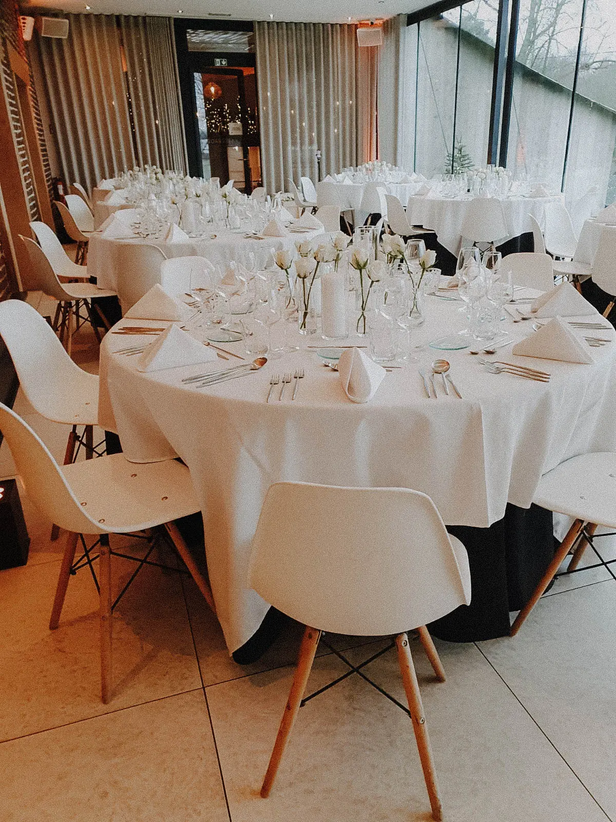Un mariage tout en blanc, où chaque détail a été pensé avec élégance. Les tables étaient parées d’un ensemble de petits vases et de bougies délicates, apportant chaleur et intimité à l’espace. L’ambiance était douce et raffinée, reflétant parfaitement l’esprit romantique et lumineux de cette journée unique.