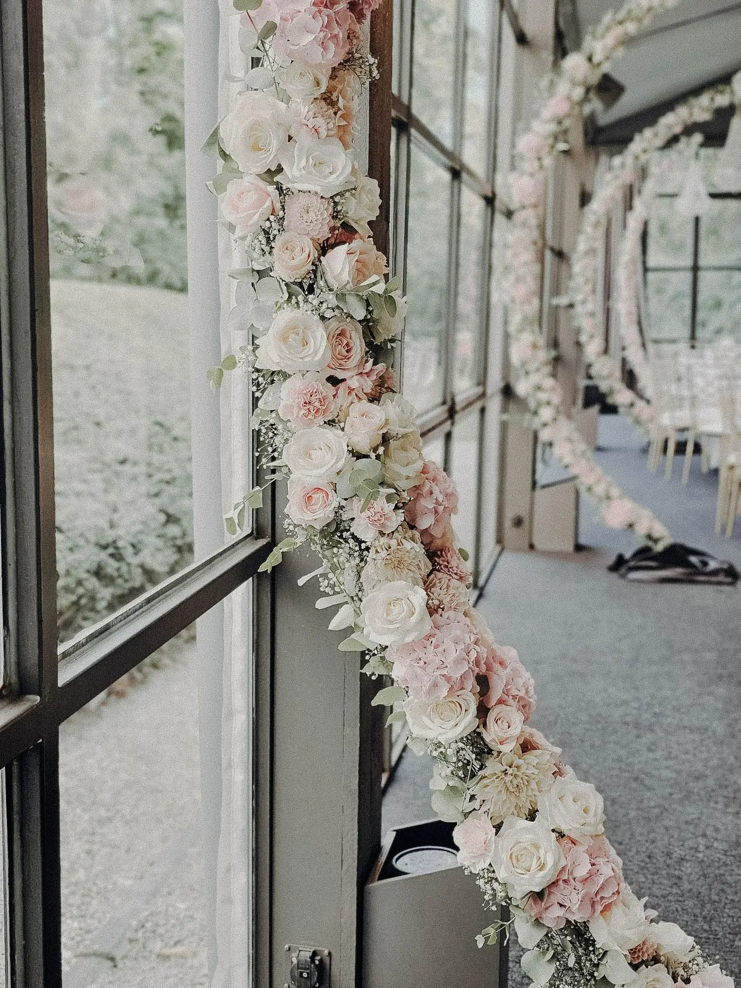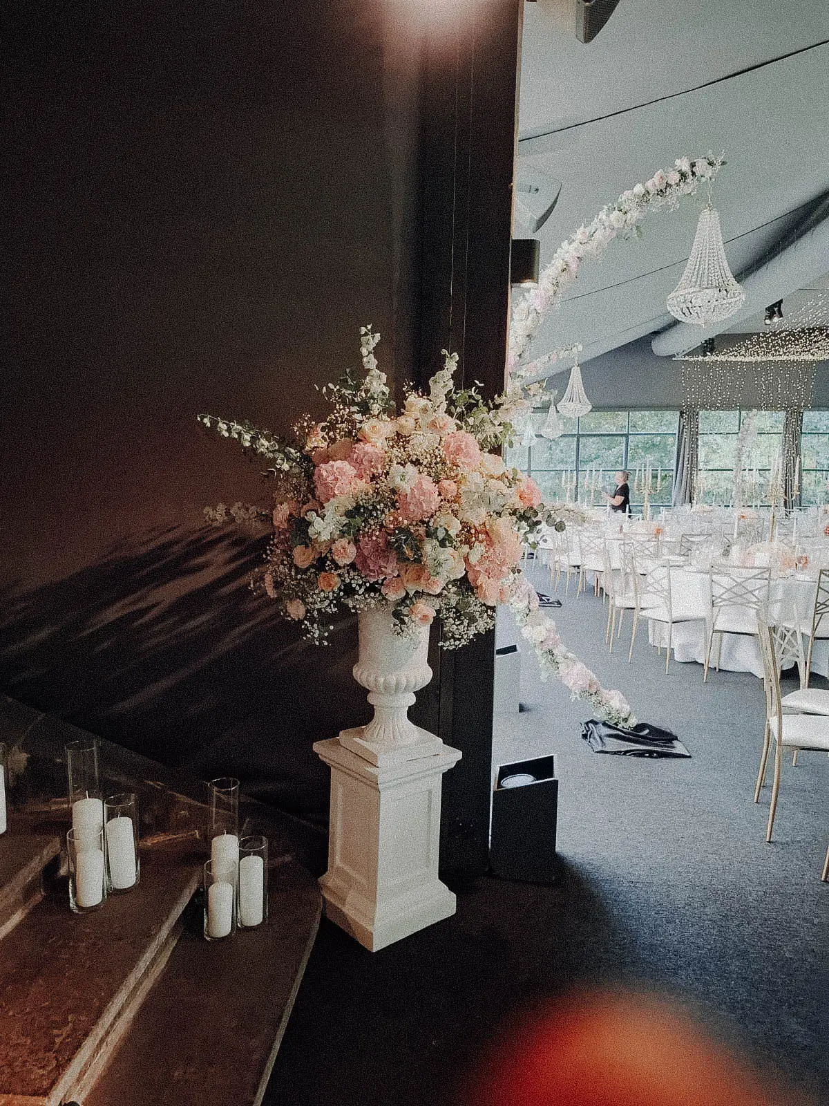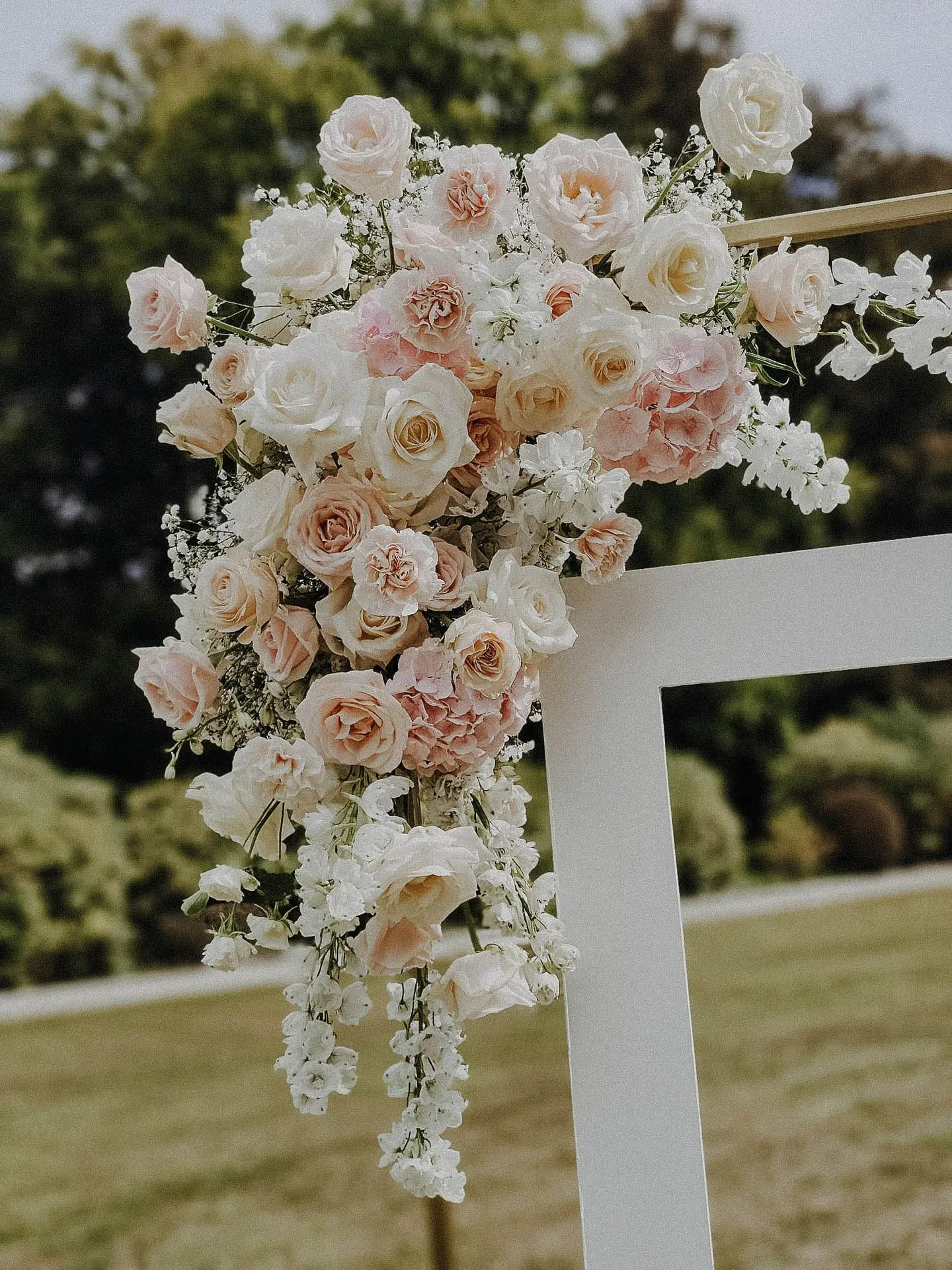 Un mariage pastel, délicat et raffiné, où chaque détail a été pensé avec élégance, orchestré par Mariage Sur Mesure, décoratrice de mariage et fleuriste de mariage. La mariée portait un magnifique bouquet de roses, accompagné d’accessoires floraux assortis pour la suite de la journée.