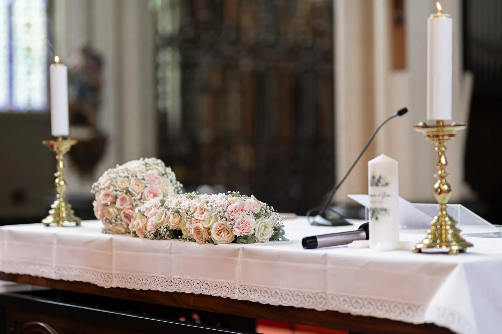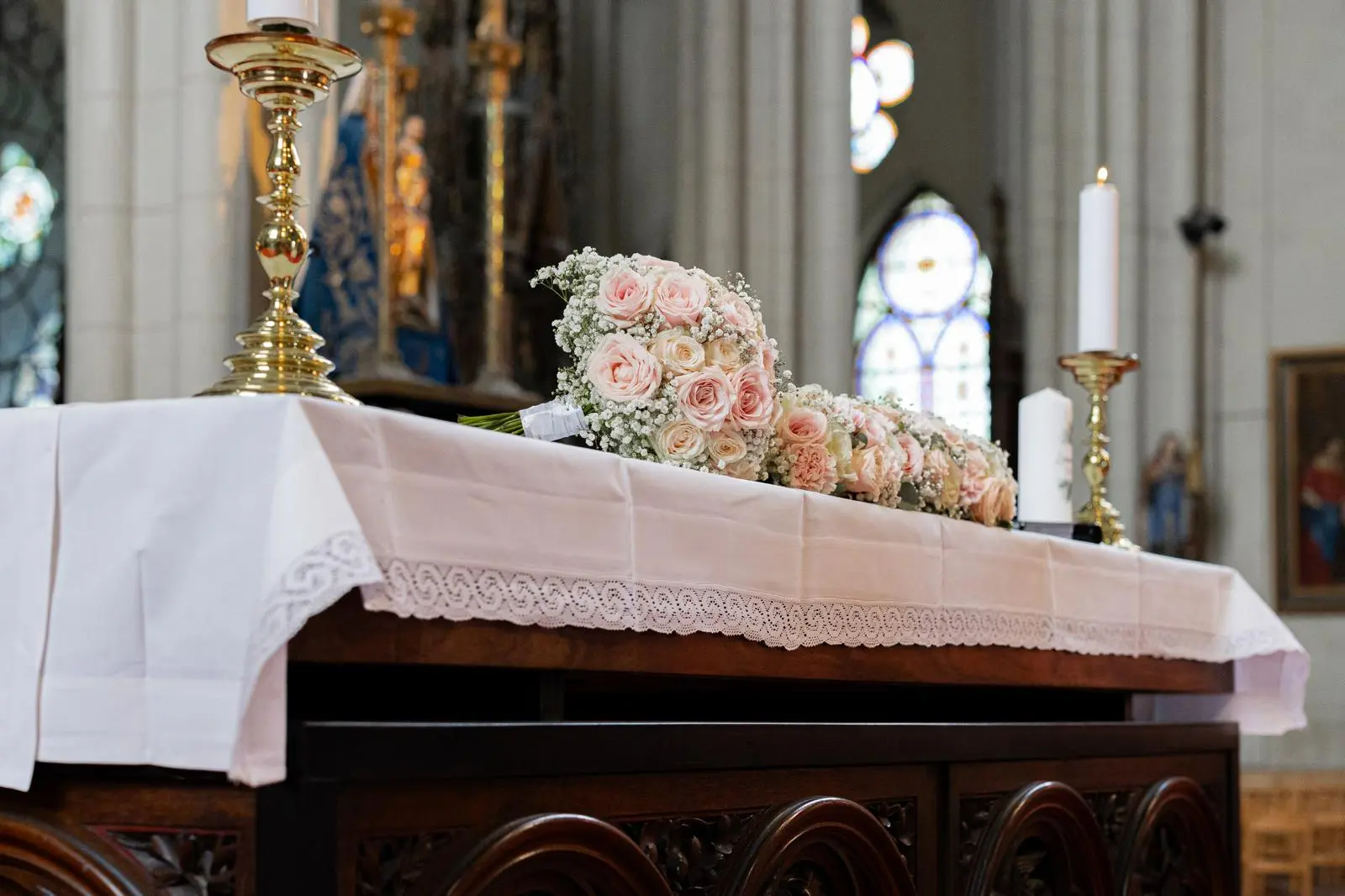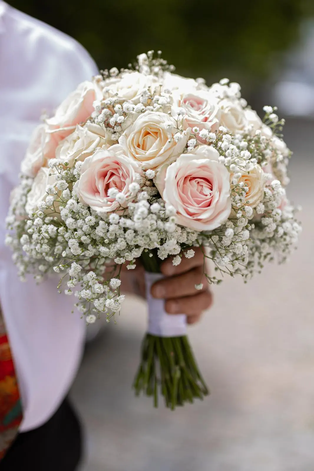 Un mariage pastel, délicat et raffiné, où chaque détail a été pensé avec élégance, orchestré par Mariage Sur Mesure, décoratrice de mariage et fleuriste de mariage. La mariée portait un magnifique bouquet de roses, accompagné d’accessoires floraux assortis pour la suite de la journée.