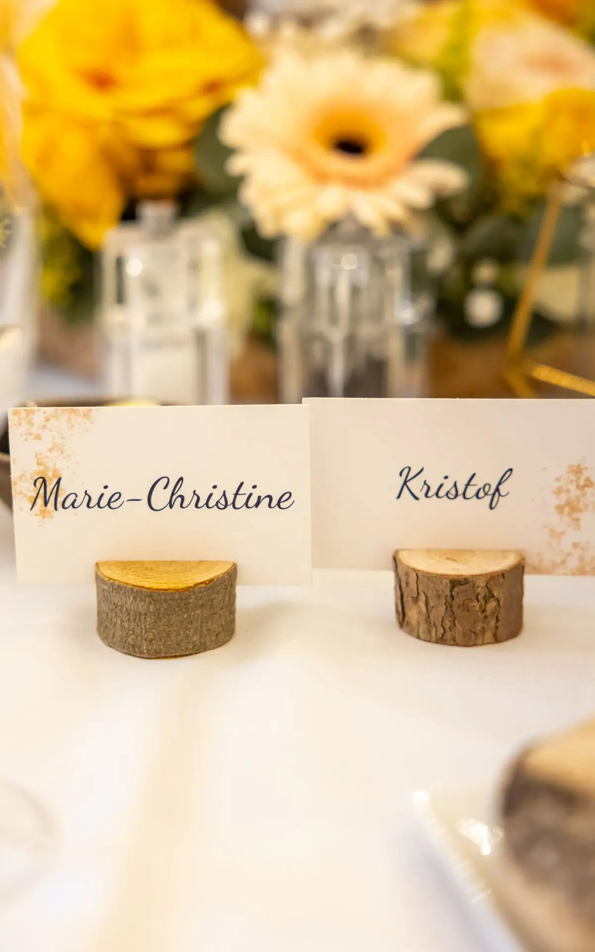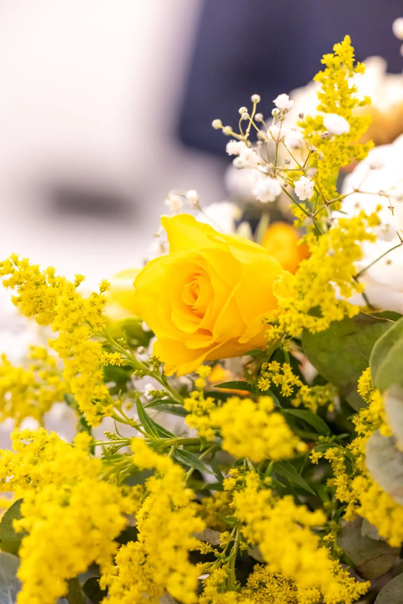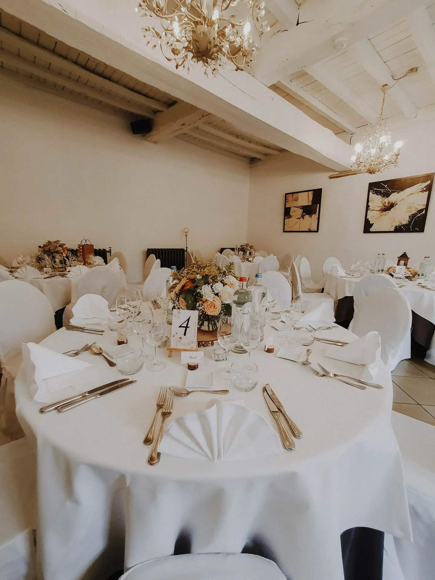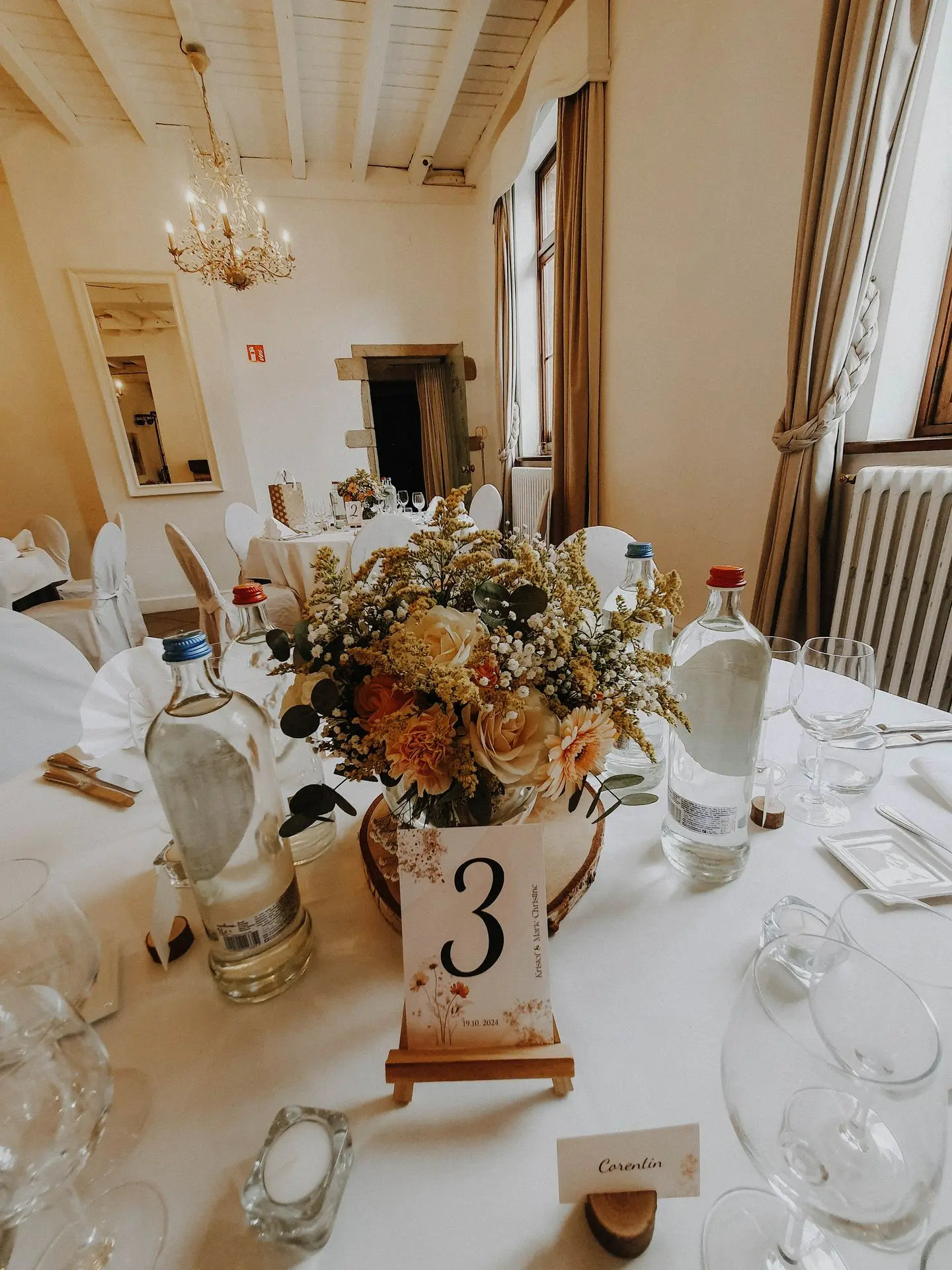 Marie-Christine et Kristof ont célébré leur mariage aux Salons de Romrée dans une ambiance champêtre rehaussée d’une délicate touche de jaune. Ce détail lumineux apportait fraîcheur et légèreté à l’ensemble de la décoration.