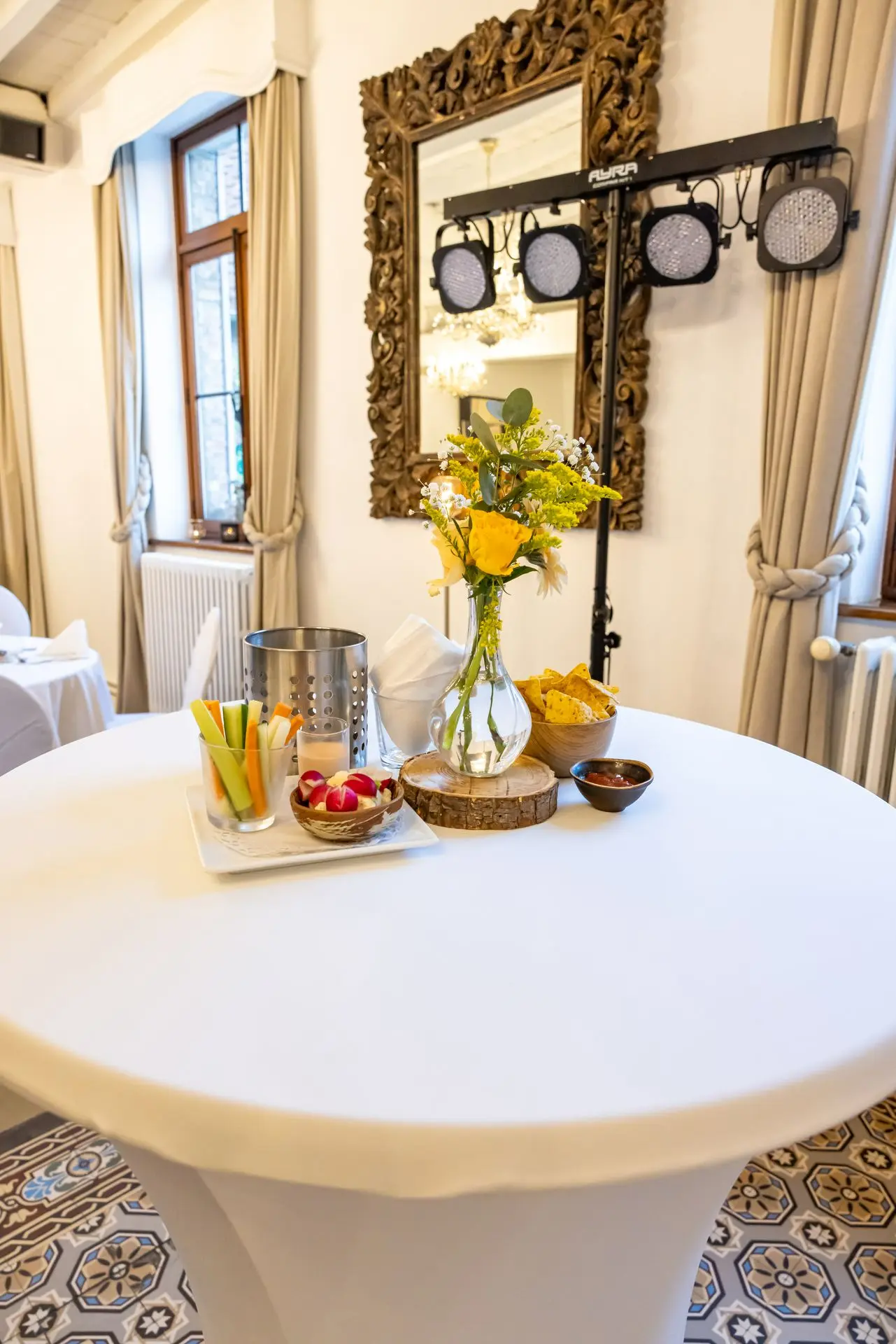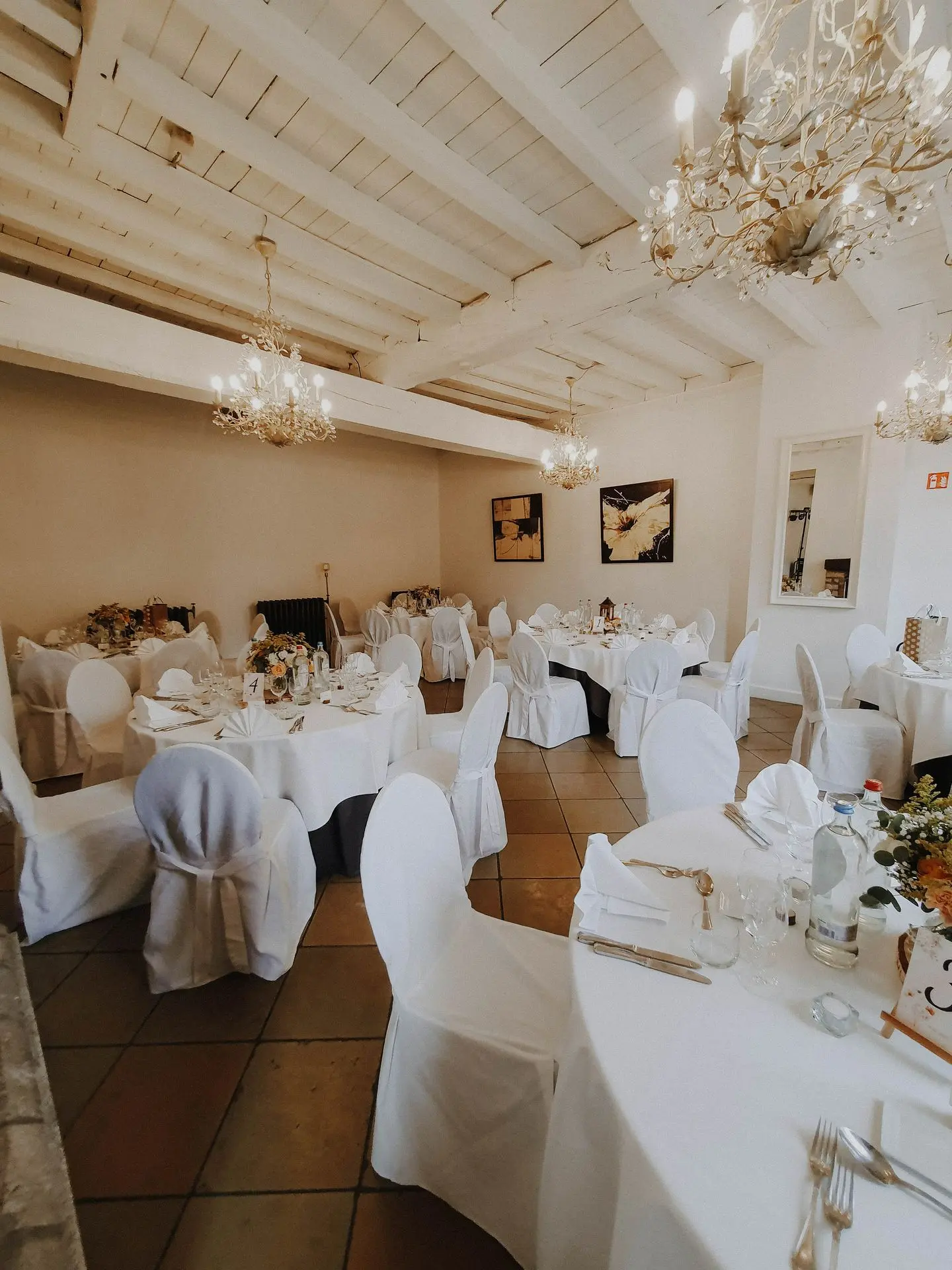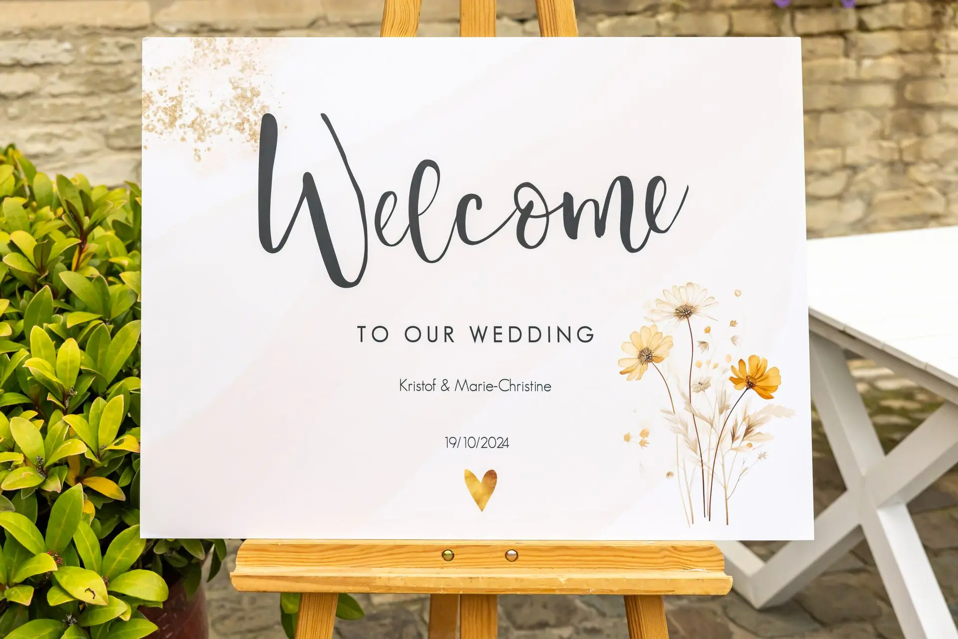 Marie-Christine et Kristof ont célébré leur mariage aux Salons de Romrée dans une ambiance champêtre rehaussée d’une délicate touche de jaune. Ce détail lumineux apportait fraîcheur et légèreté à l’ensemble de la décoration.