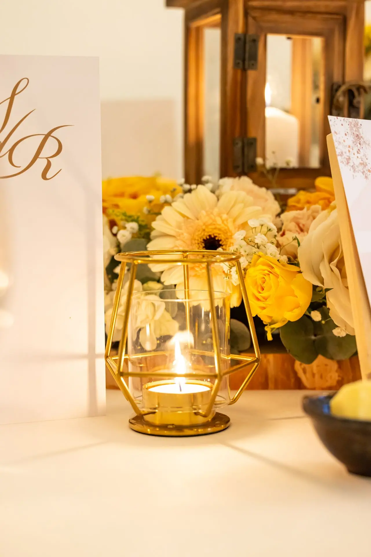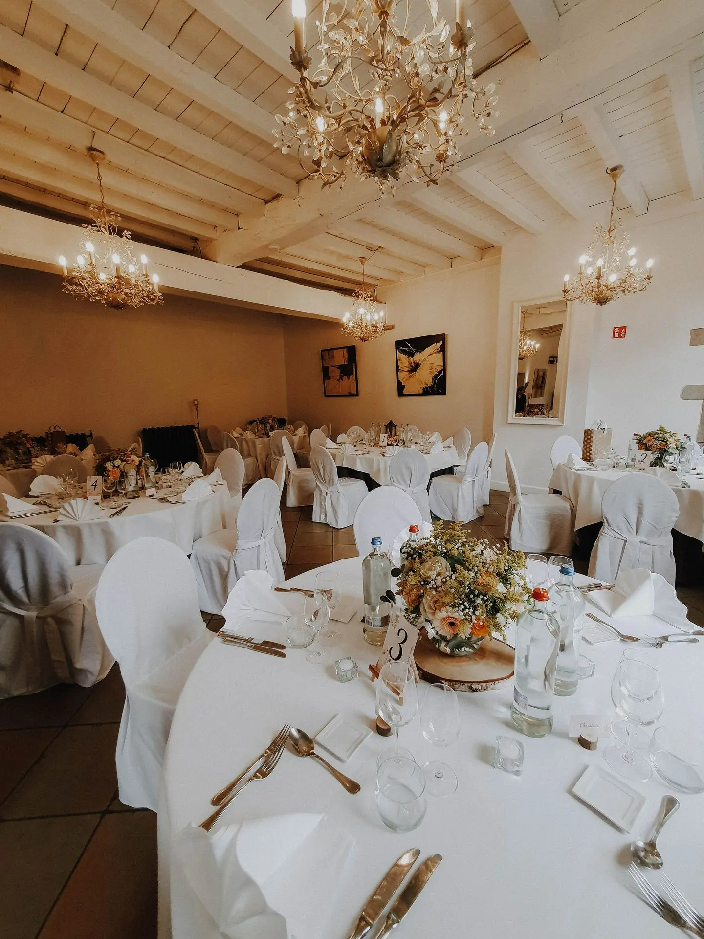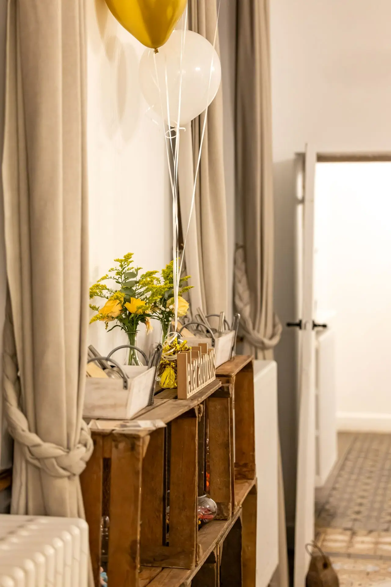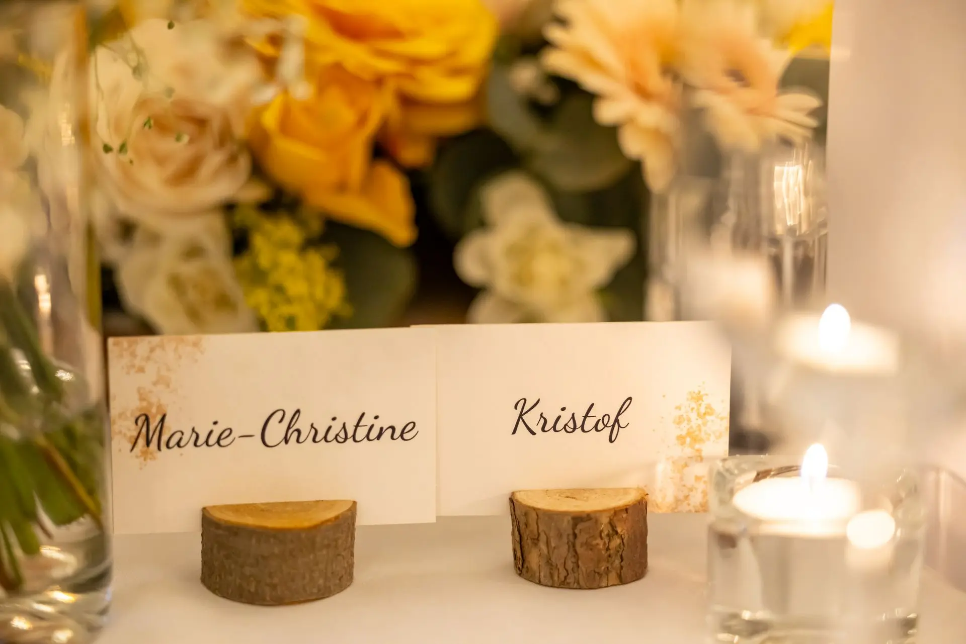 Marie-Christine et Kristof ont célébré leur mariage aux Salons de Romrée dans une ambiance champêtre rehaussée d’une délicate touche de jaune. Ce détail lumineux apportait fraîcheur et légèreté à l’ensemble de la décoration.