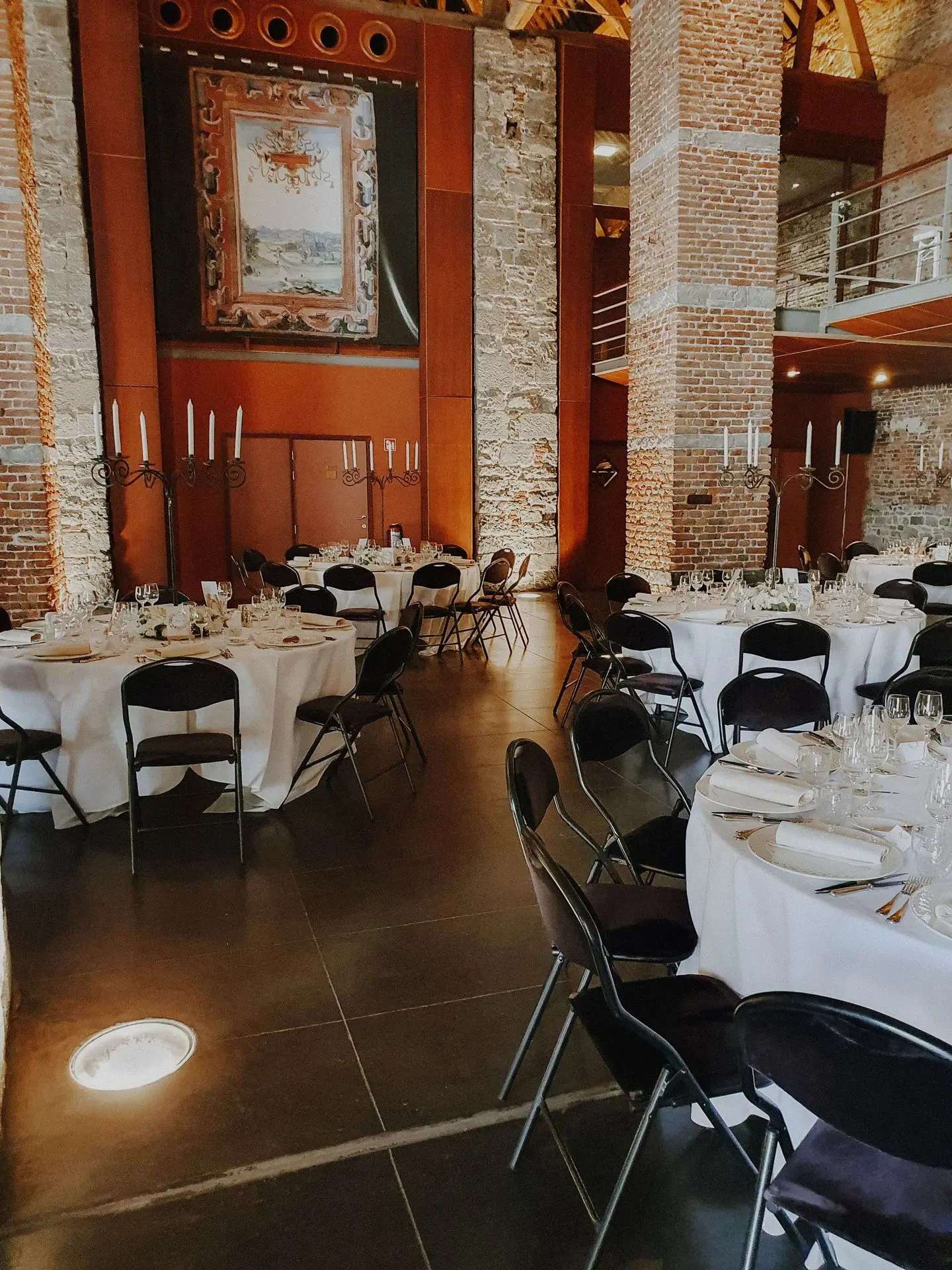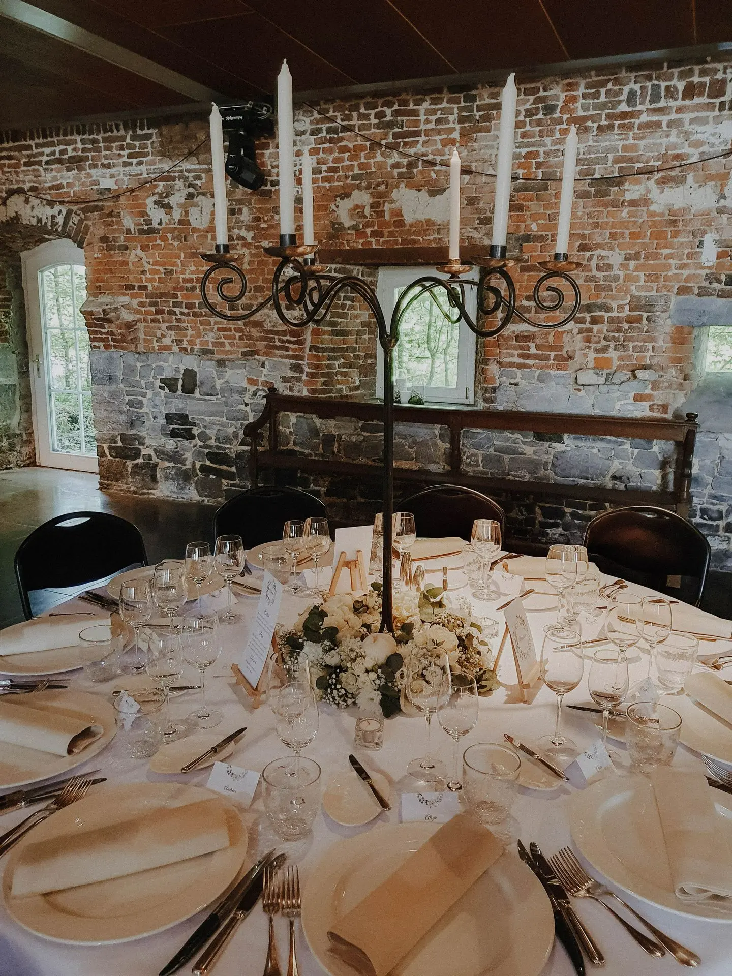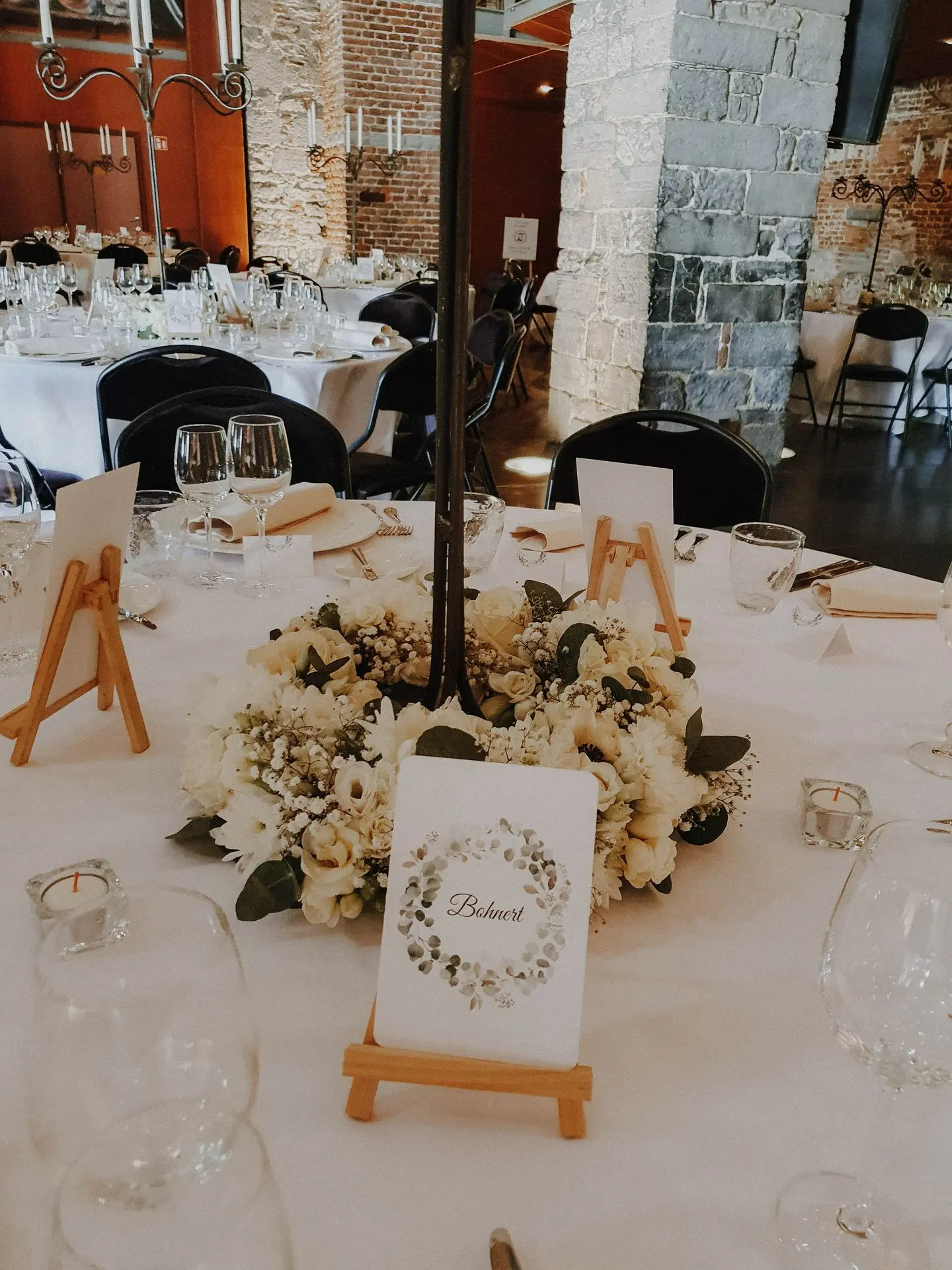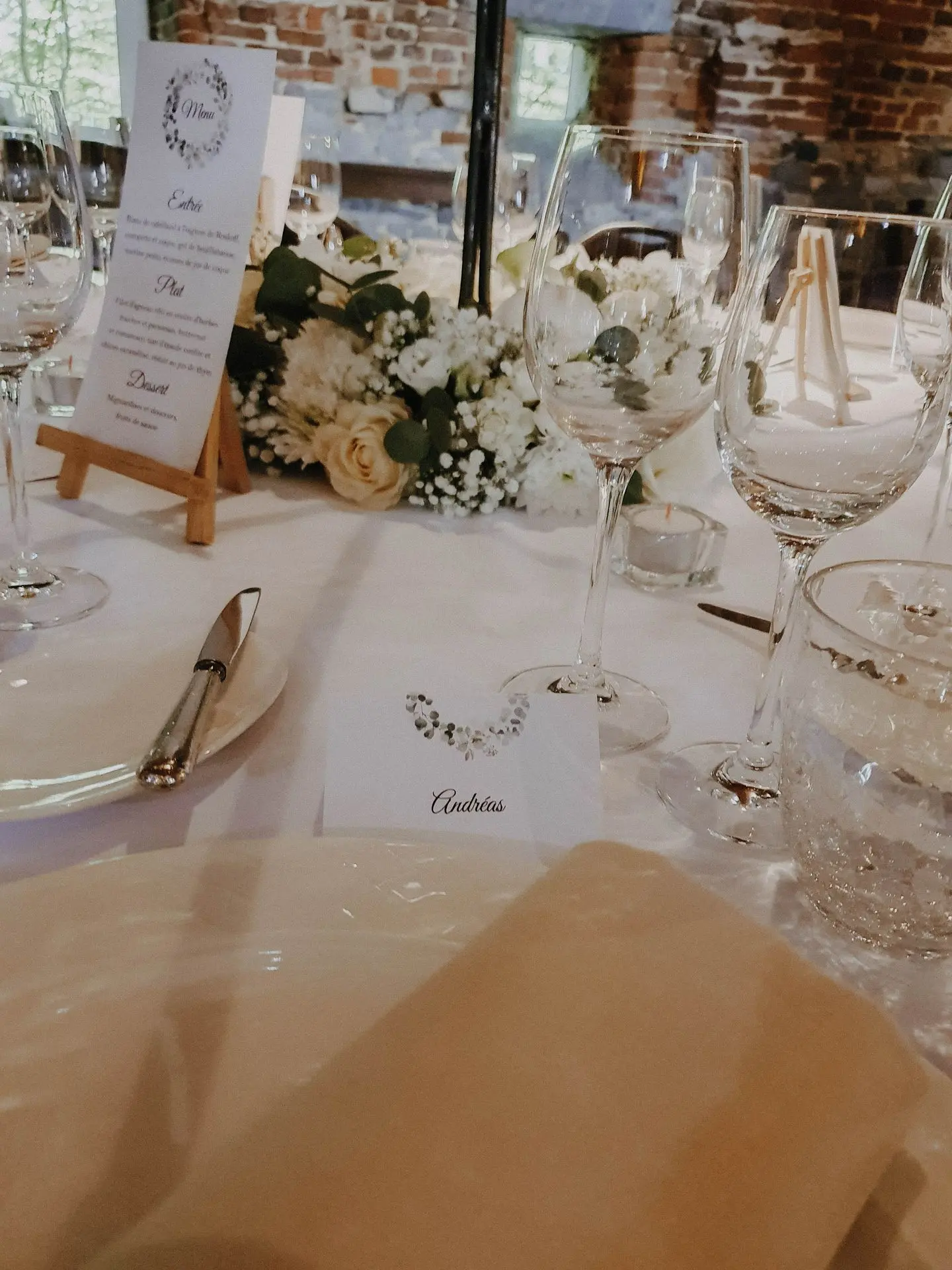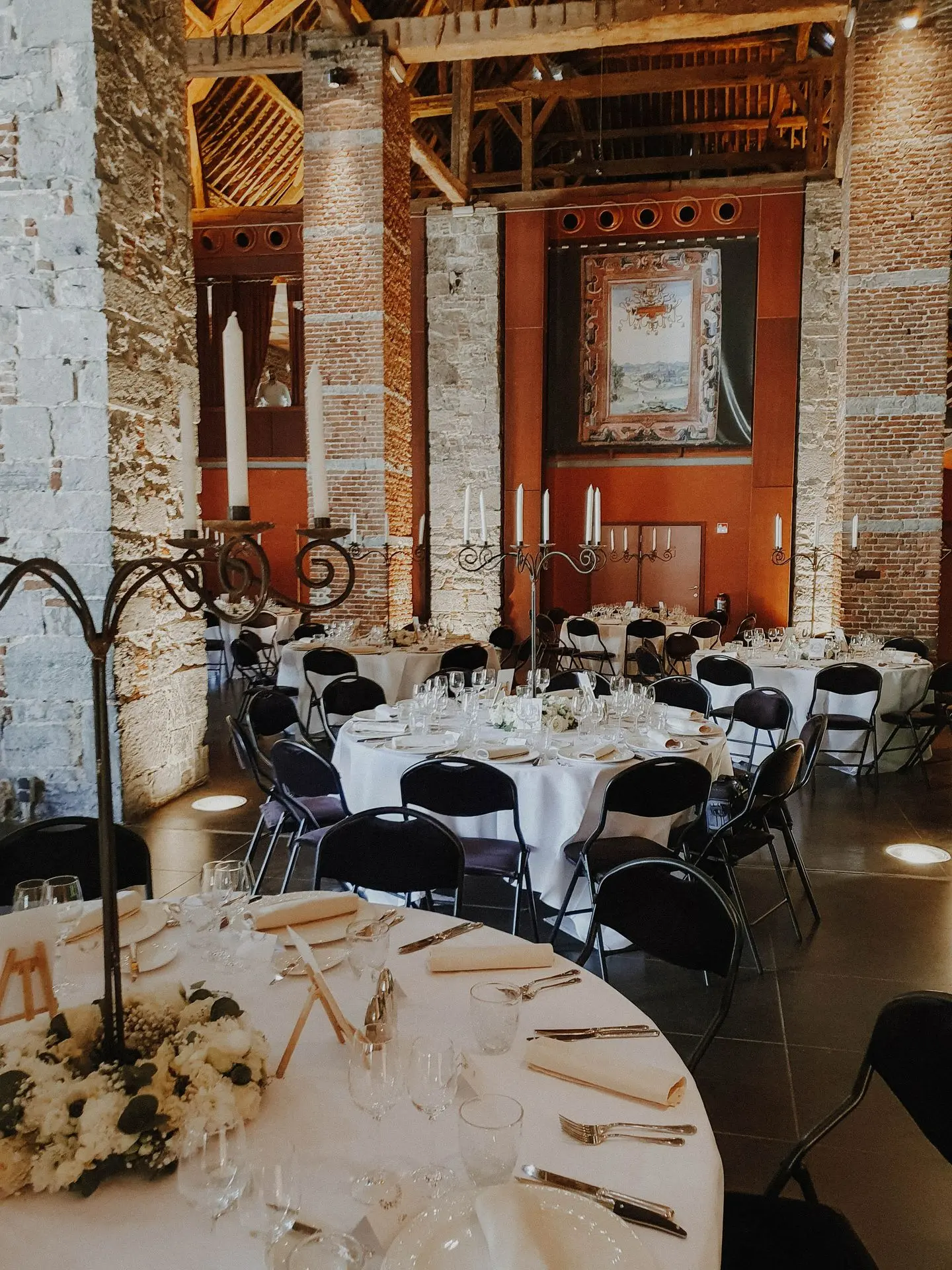 L’ambiance romantique s’est prolongée en salle avec de superbes chandeliers en fer forgé associés à une couronne de fleurs qui apportait une touche naturelle et raffinée.