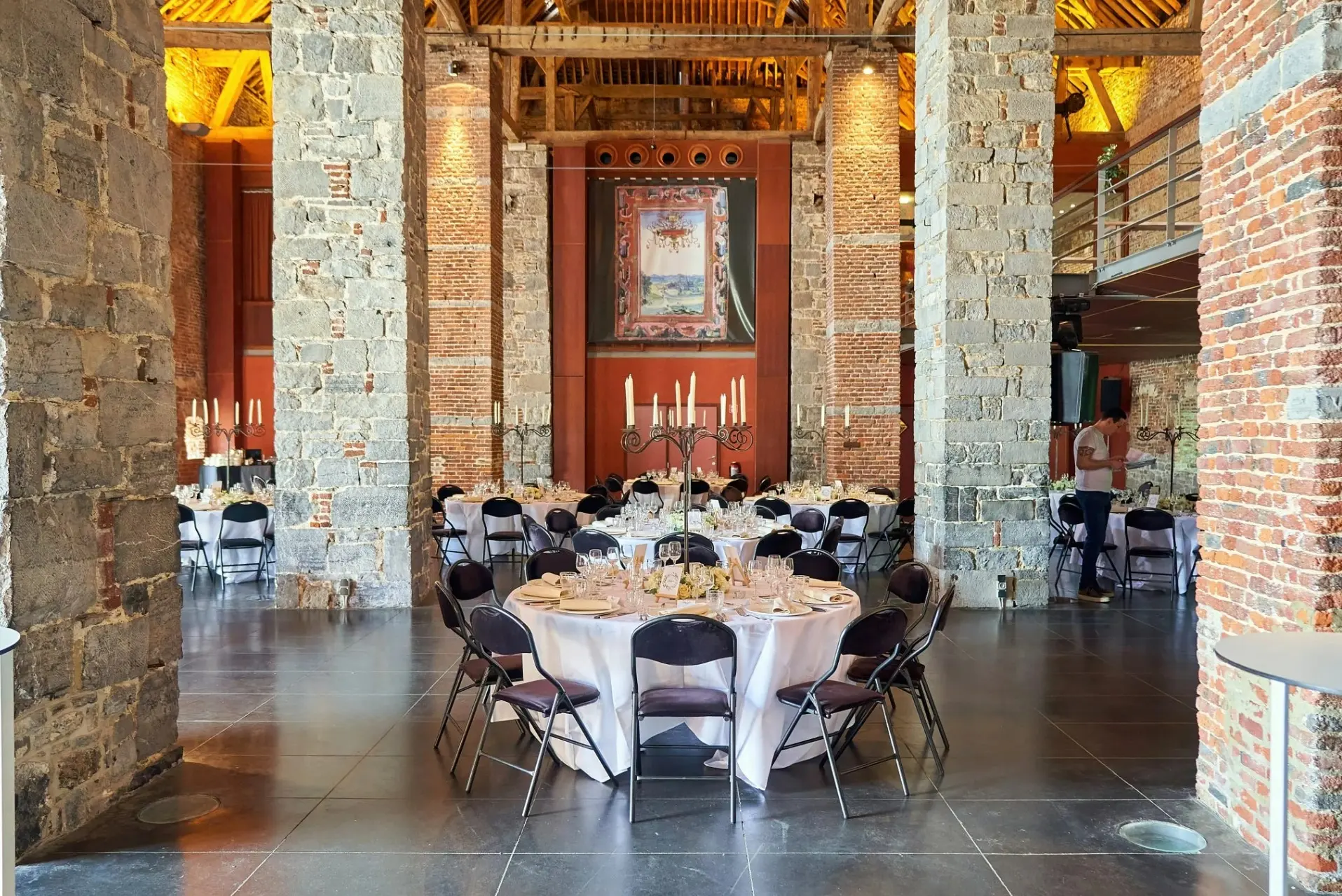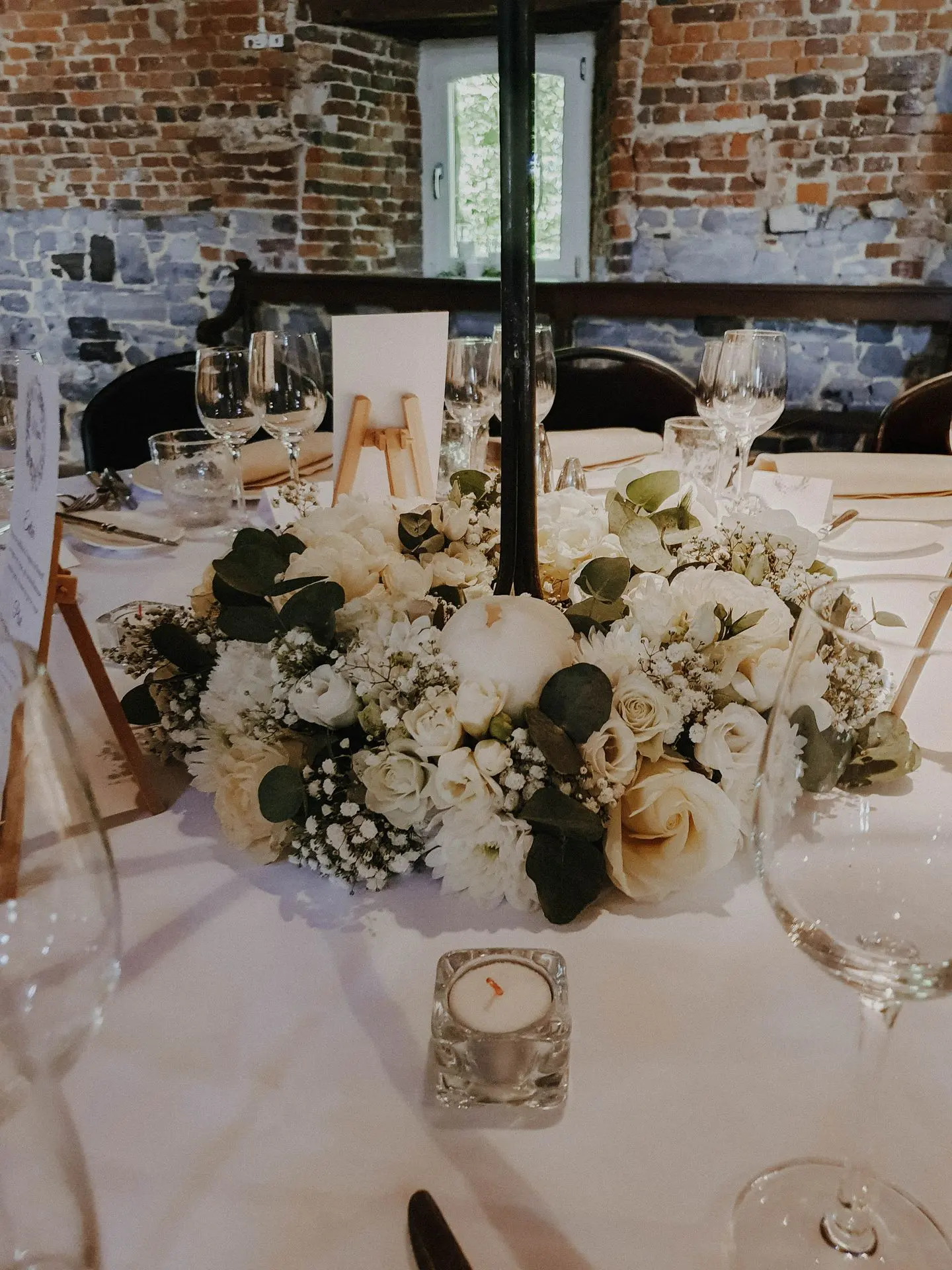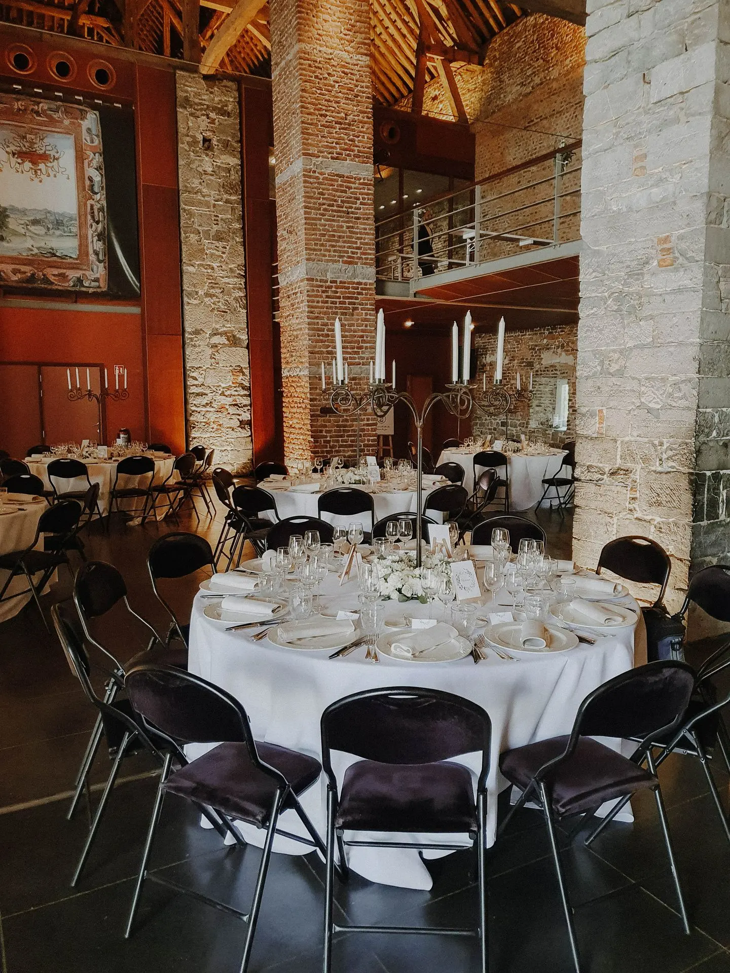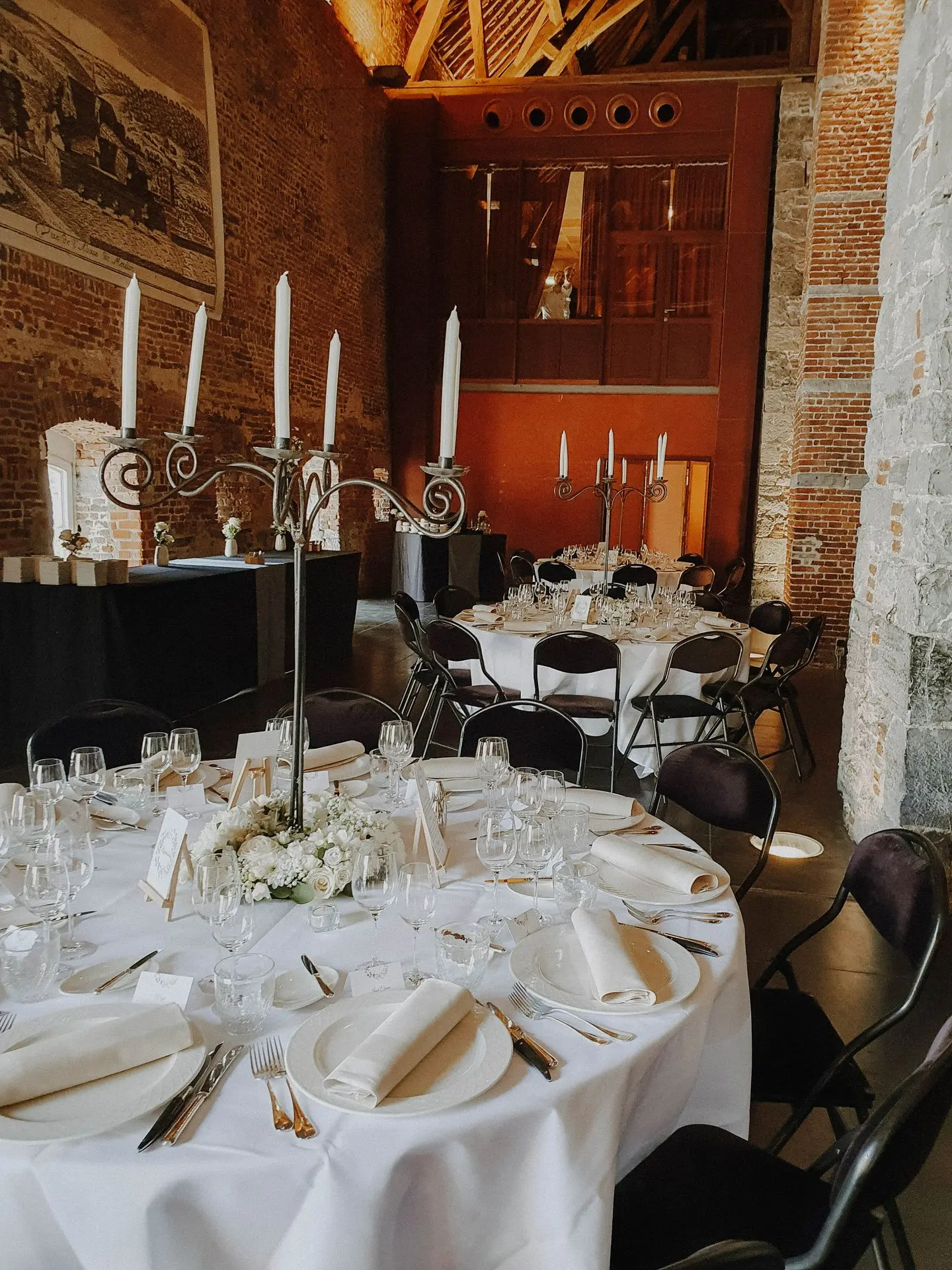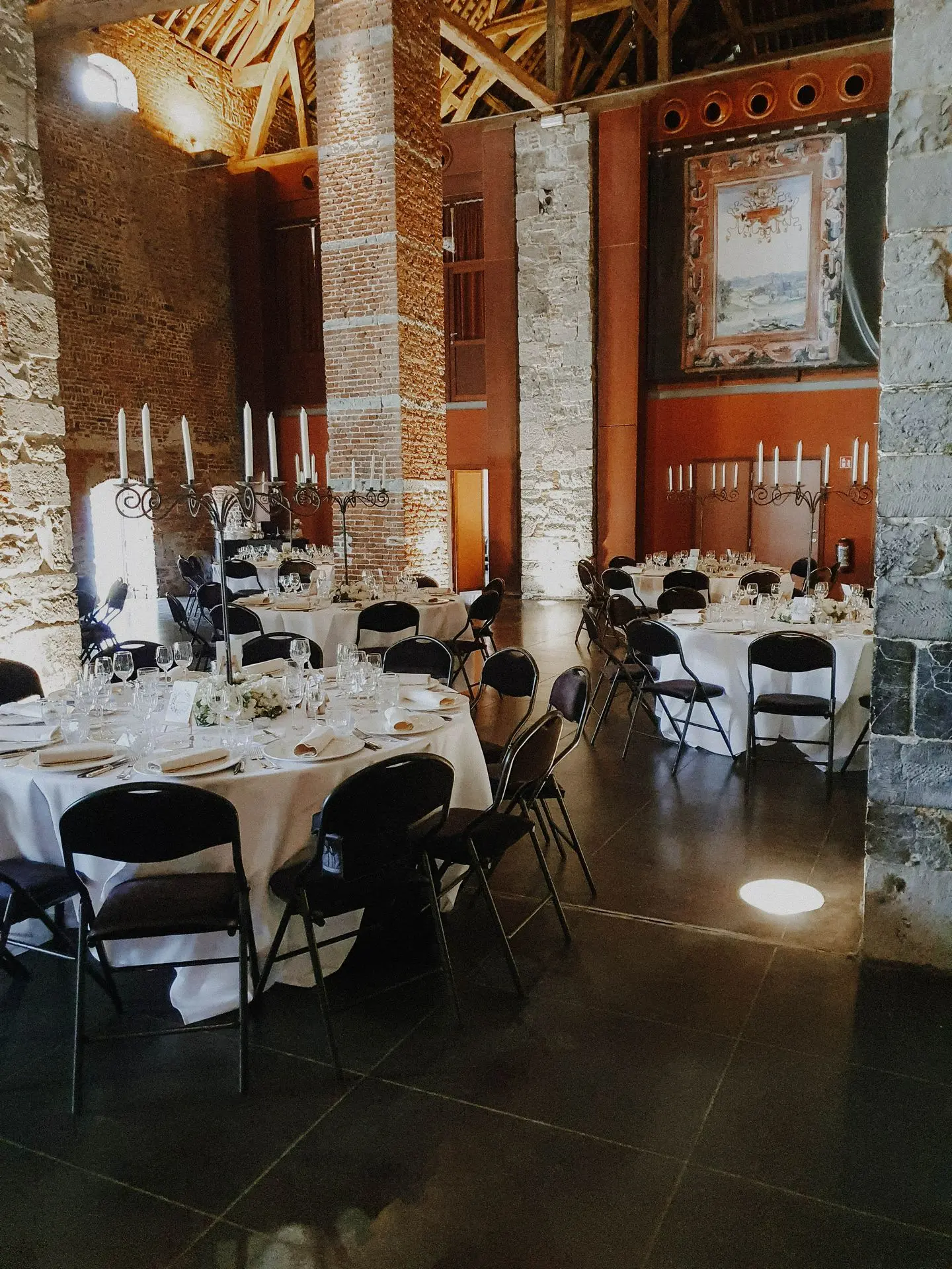 L’ambiance romantique s’est prolongée en salle avec de superbes chandeliers en fer forgé associés à une couronne de fleurs qui apportait une touche naturelle et raffinée.