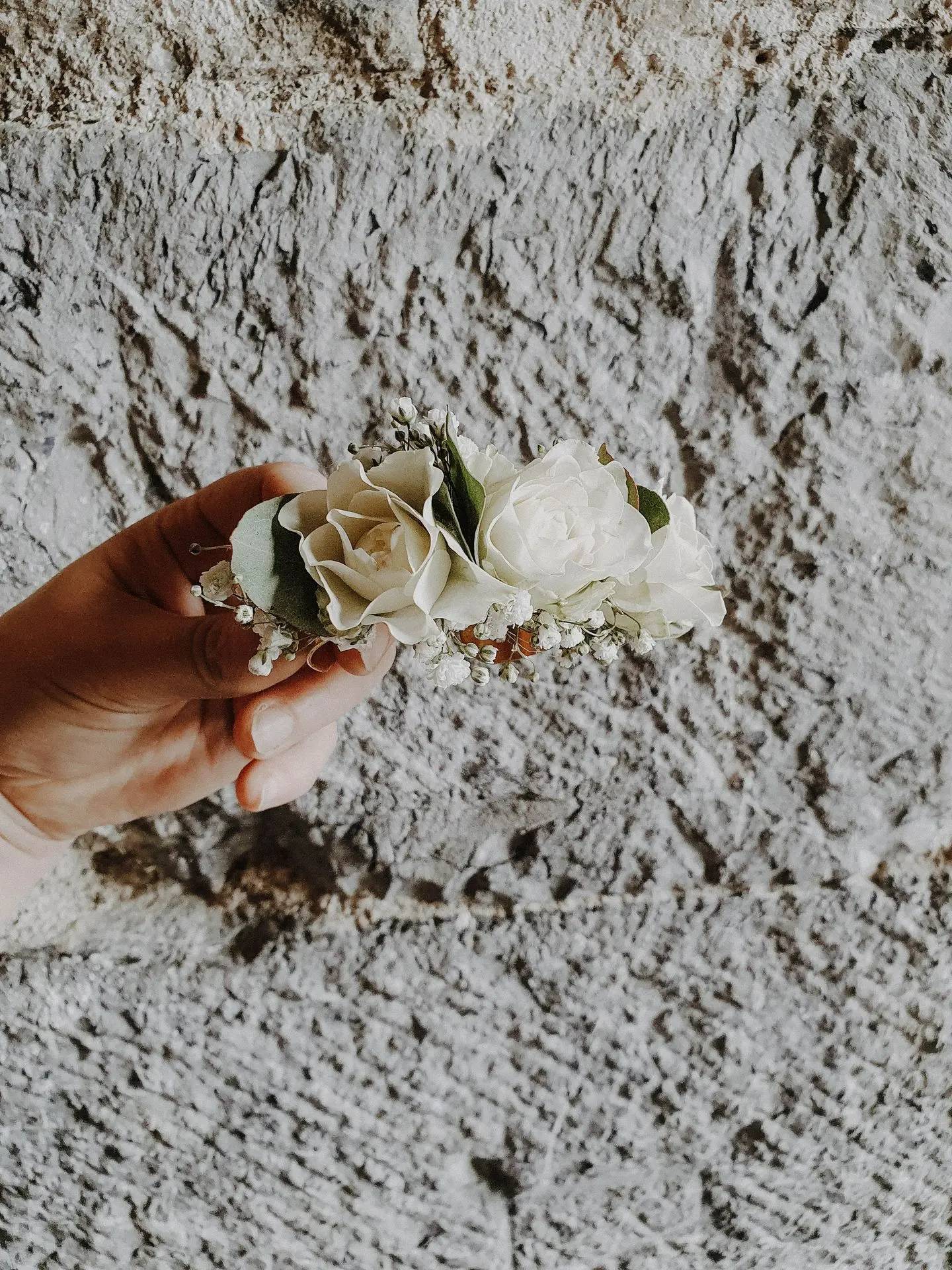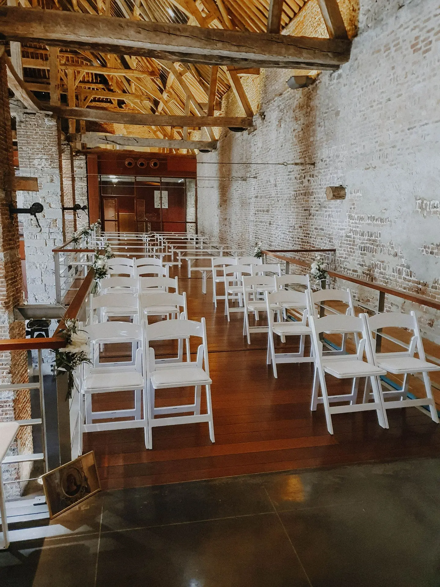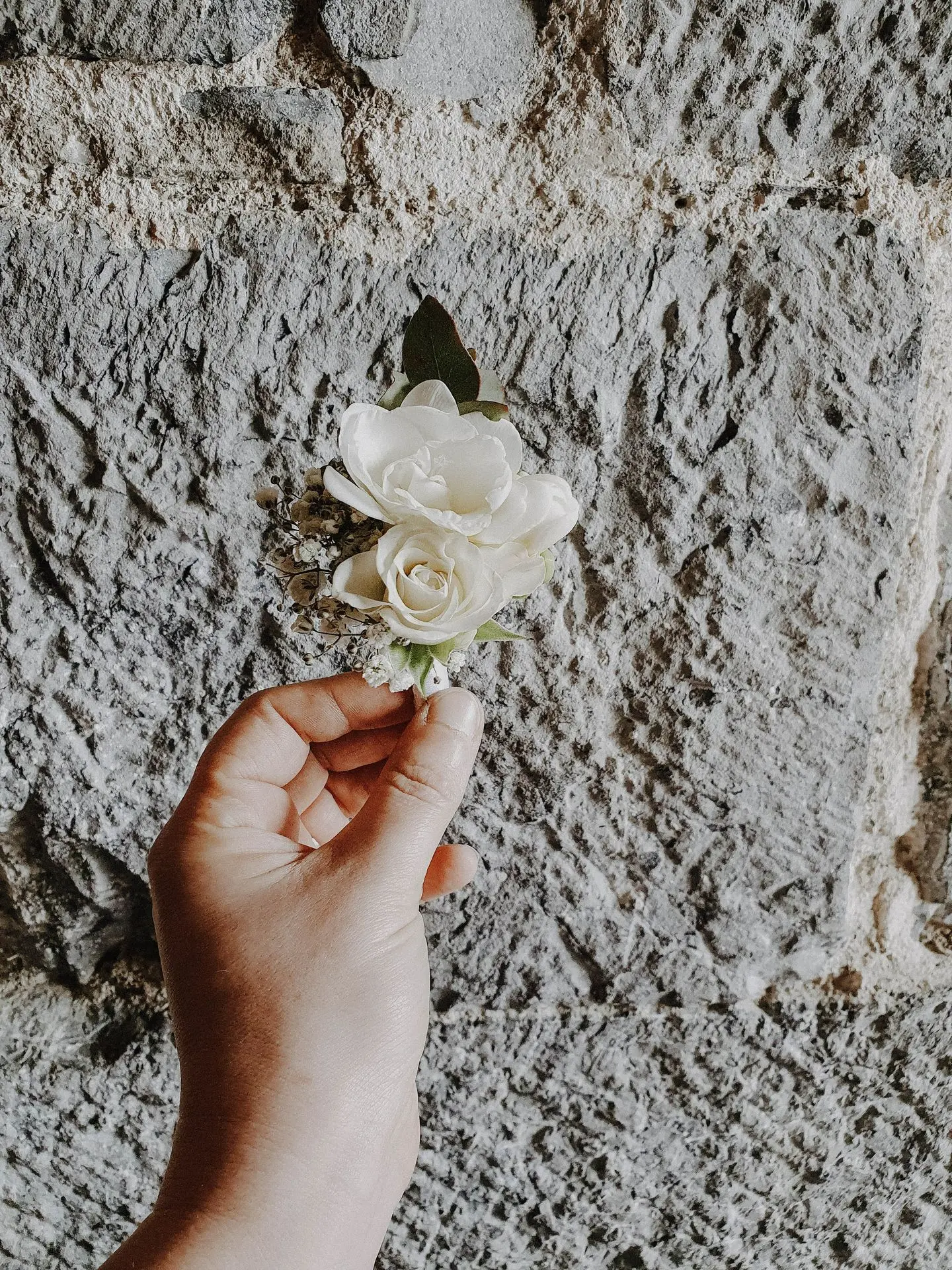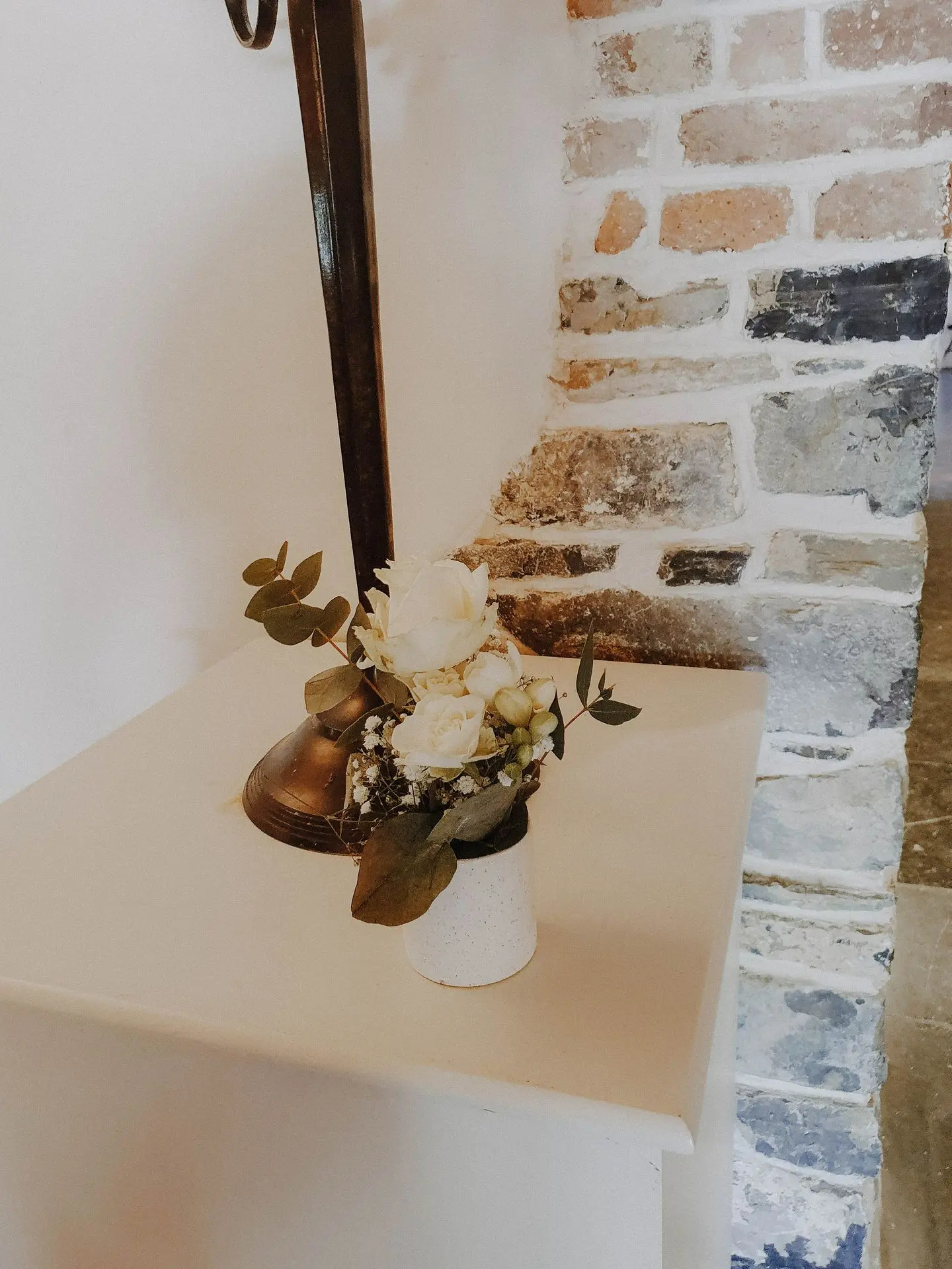 Miriam et Hélio ont célébré leur union à la Ferme de l’Abbaye de Moulin, un lieu chargé de charme où s’est tenue leur cérémonie laïque sous une arche délicatement décorée de blanc et de vert.