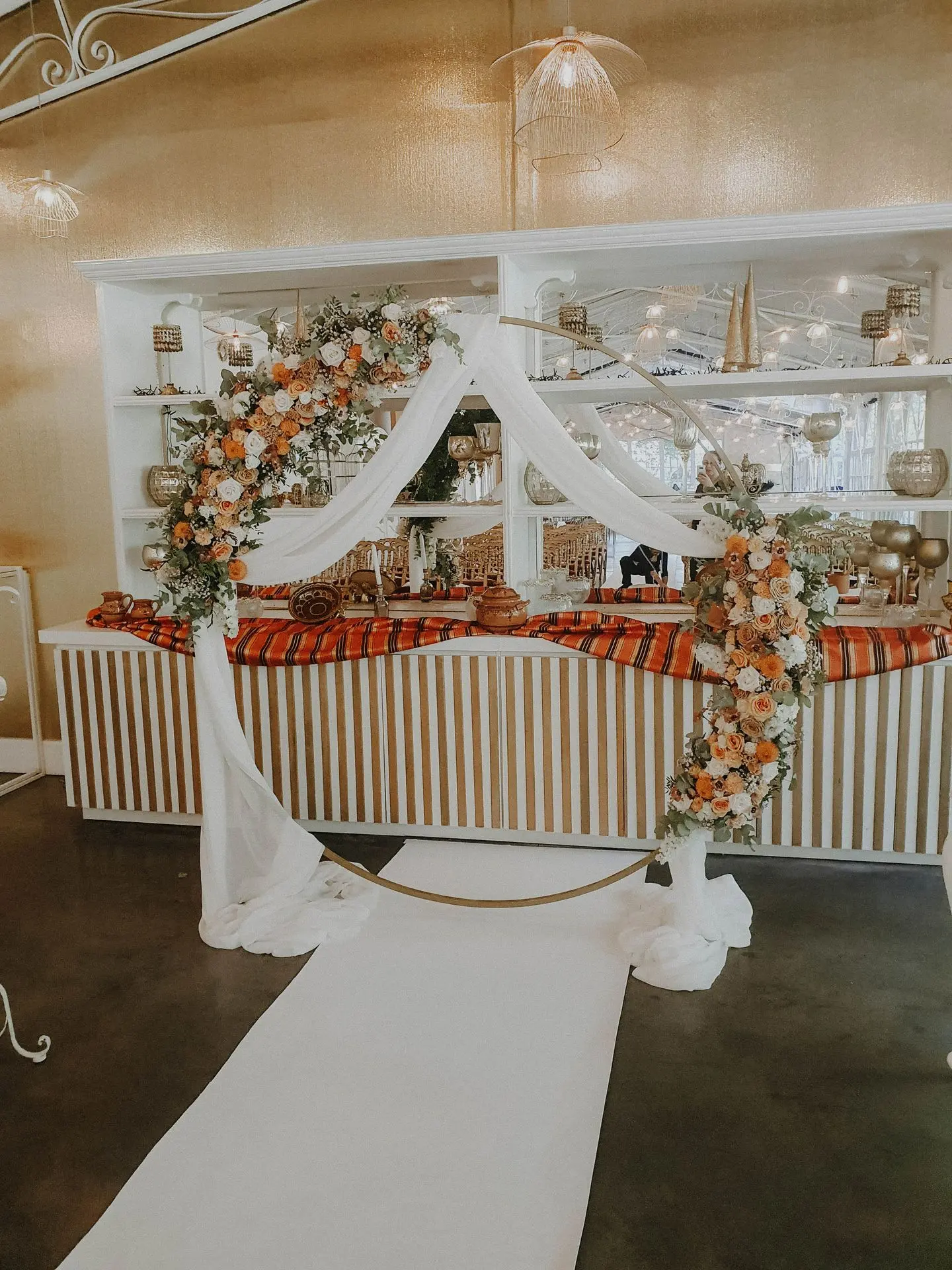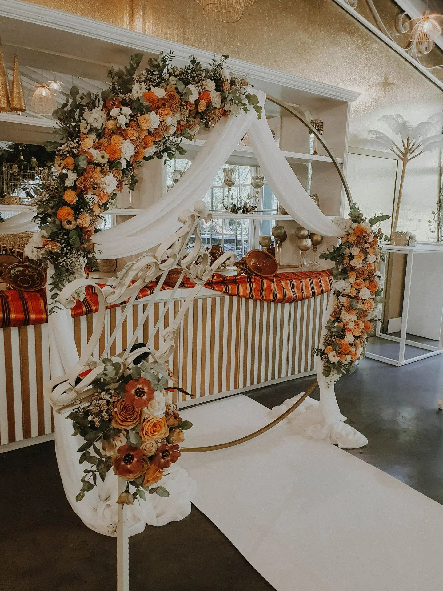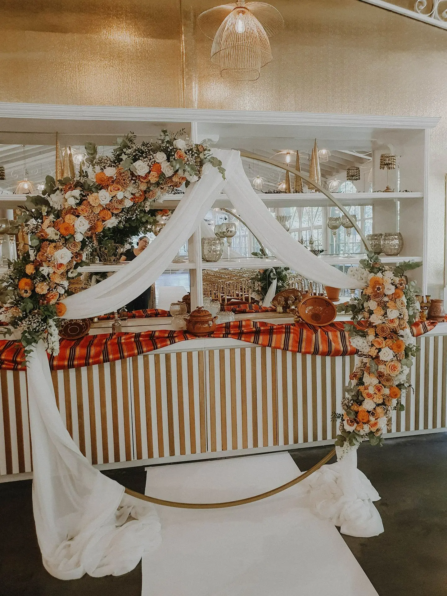 Leur cérémonie était sublimée par une magnifique arche fleurie, à la fois généreuse et élégante, qui offrait un cadre empreint d’émotion et de tradition.